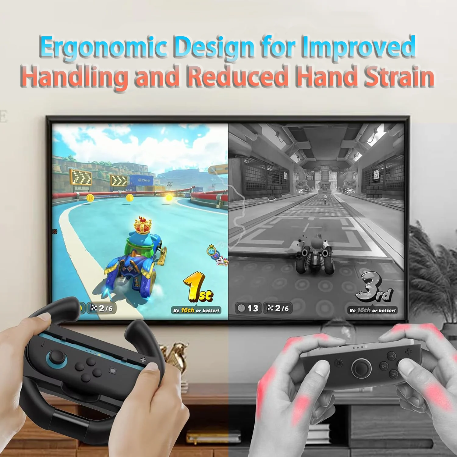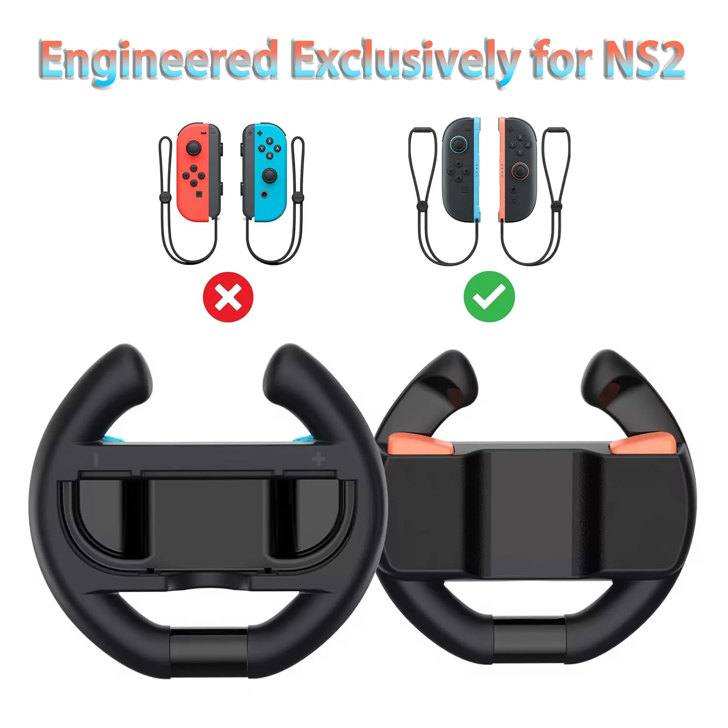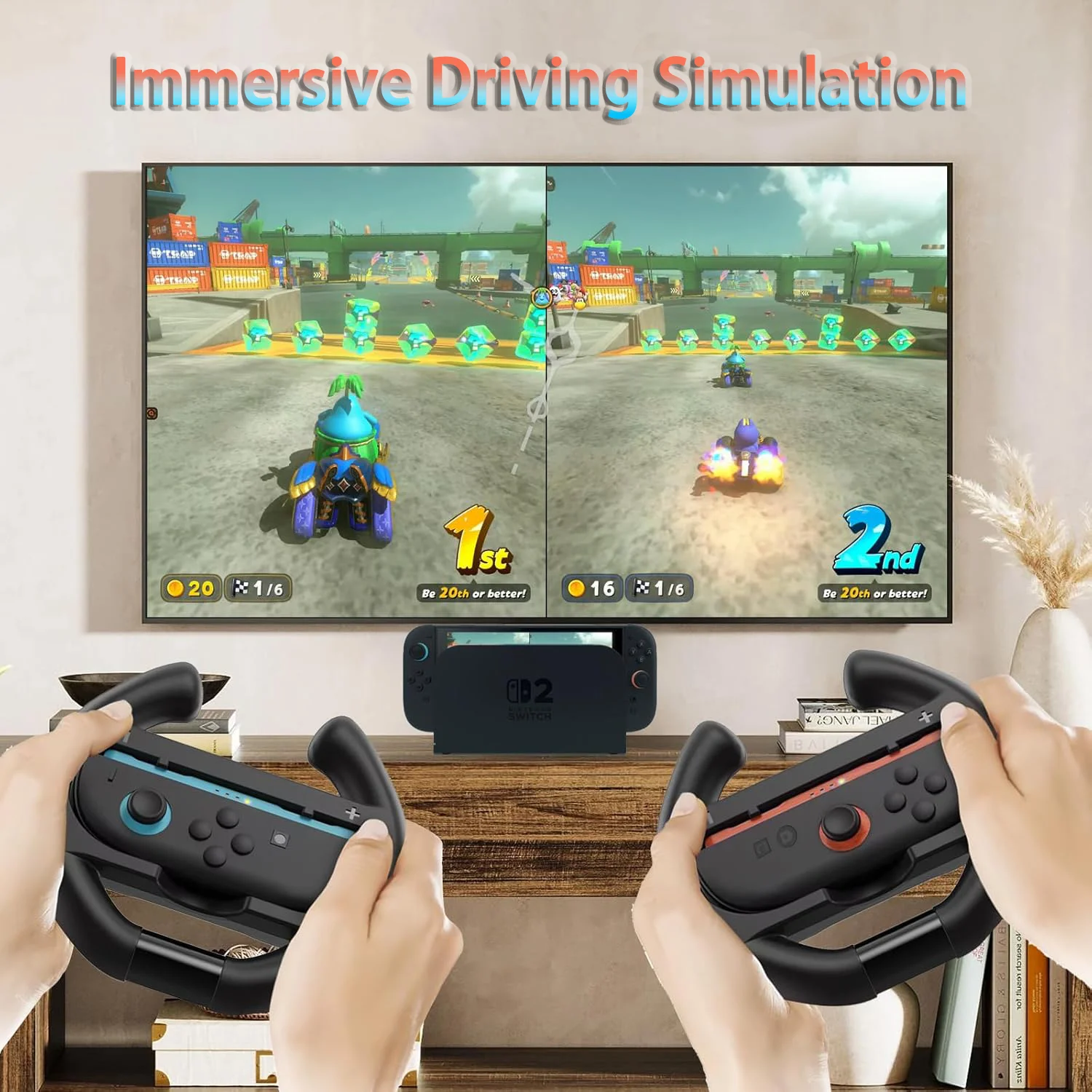 4-In-1 Steering Racing Wheel Controller Grip for Switch 2 Left and Right Jon-Con Accessories 2 Hand Holder for Mario Kart World