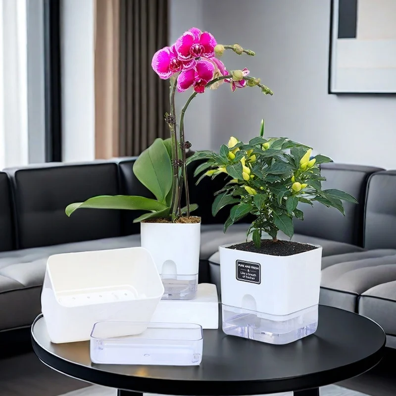Self Watering Pot Double-deck Magnetic Plastic Self-absorbent Cotton Lazy Flower Pot Fashion Flowerpot Home Garden Pots Supplies