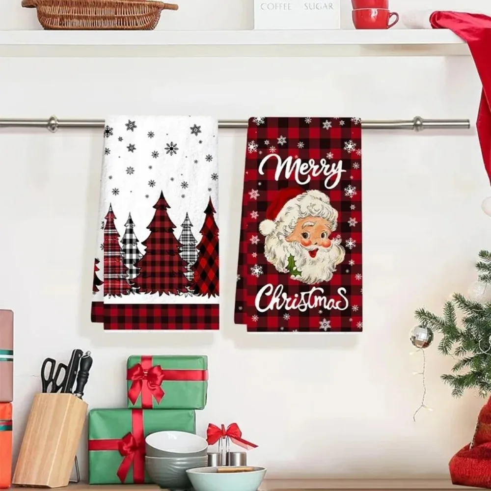 2pcs Christmas Kitchen Towels Buffalo Plaid Xmas Hand Towels Christmas Decorations for Home 2025 Navidad Noel Dish Towels Gifts