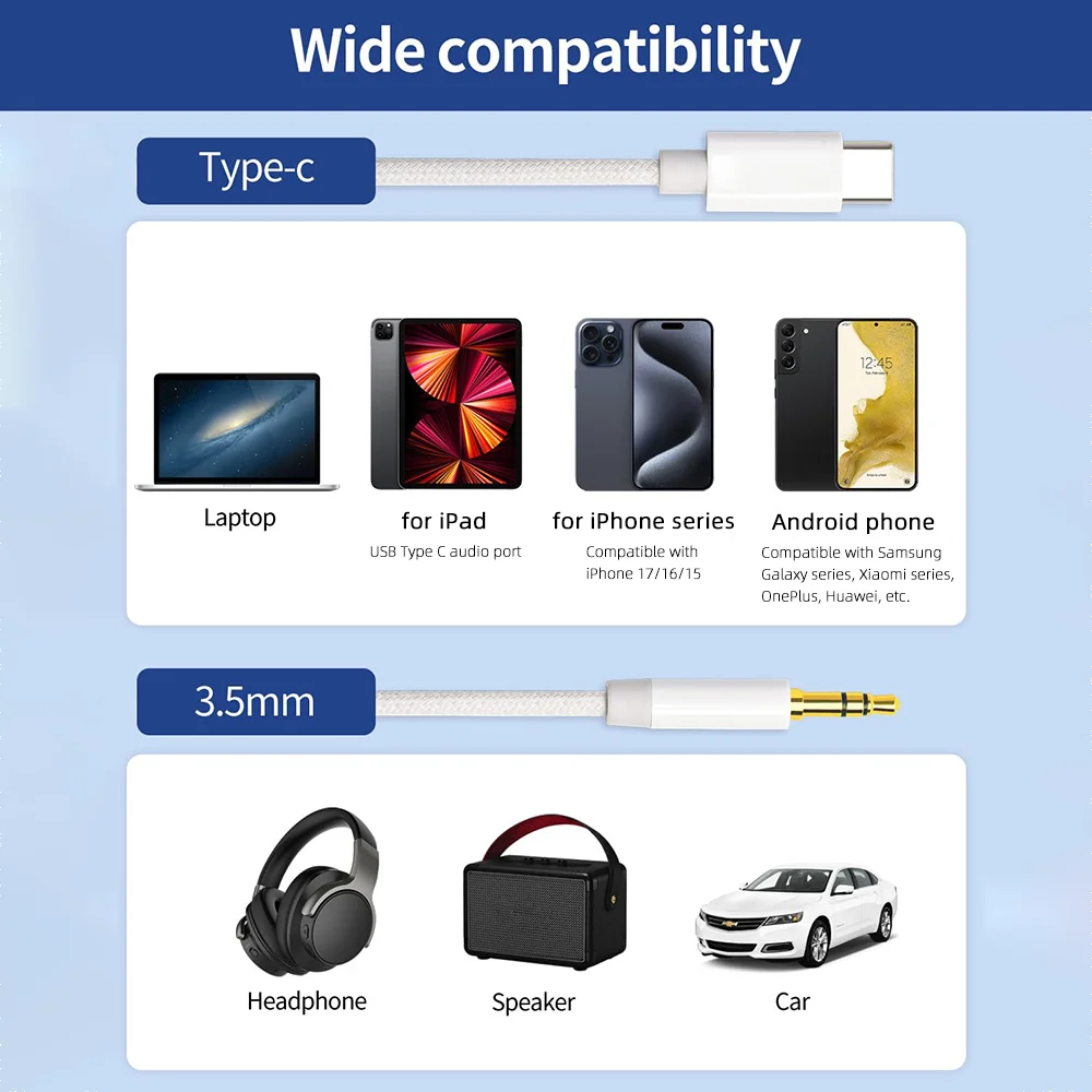 AUX Audio Cable Type C USB C to 3.5mm Jack AUX Cord Car Speaker Headphones Adapter for iPhone 17 16 15 for Samsung Galaxy Xiaomi