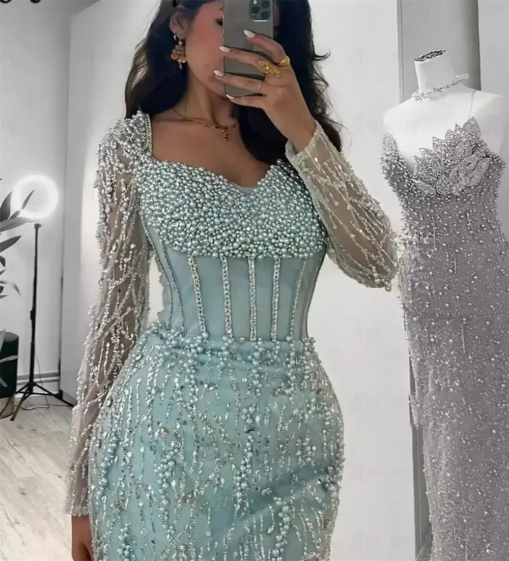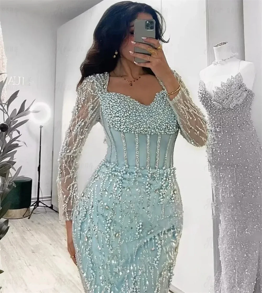 ALI shop - rezultati pretrage ... ... Contessa Custom Luxury Mint Green Mermaid Evening Gown Long Sleeve Corset Heavy Beaded Pearls Dubai Prom Dress Formal Party ::: 2021 ::: :::