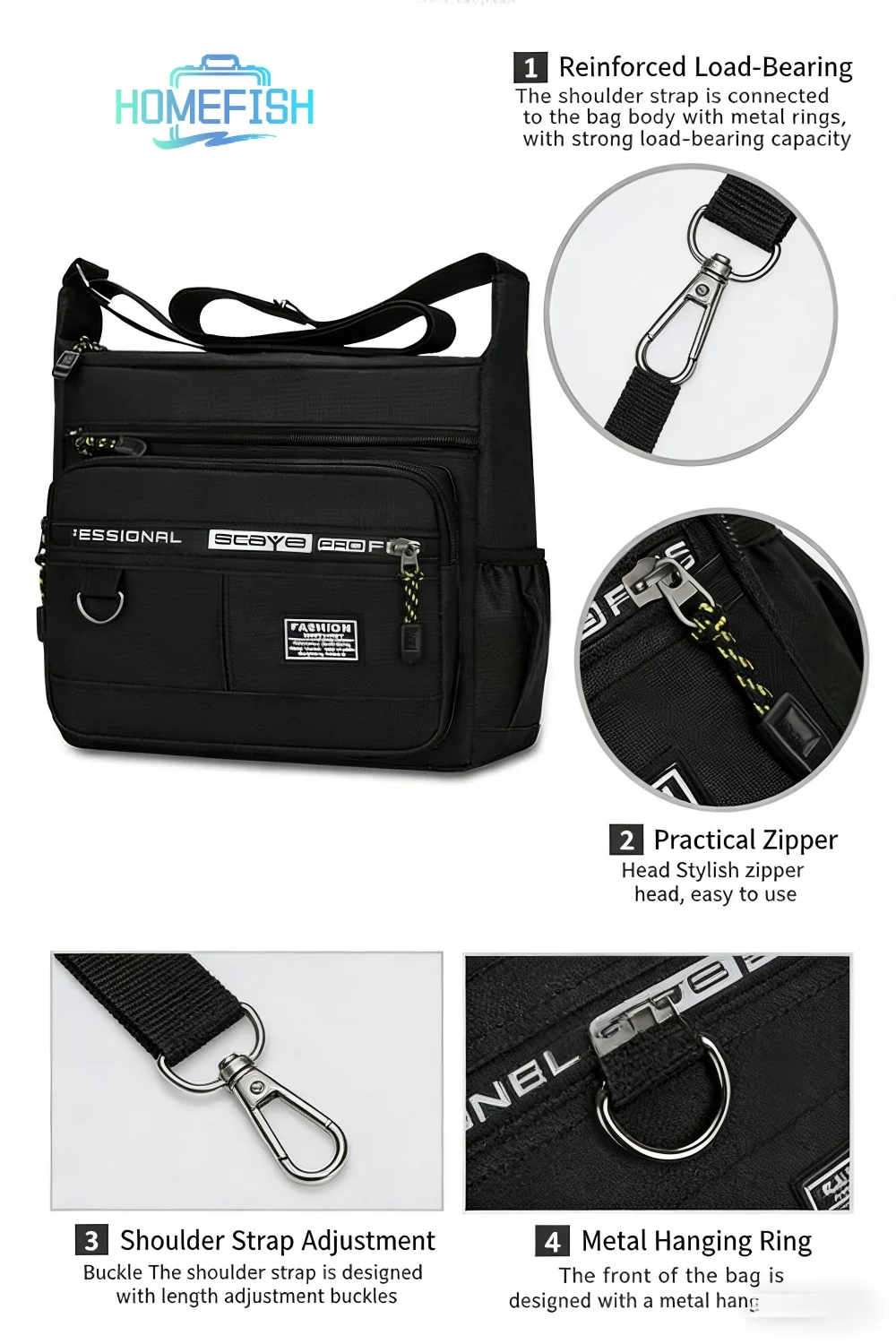 Design Oxford Shoulder Bag Large Capacity Men's Casual Multi-layer Pocket Fashion Single Shoulder Crossbody Luxury Messenger Bag