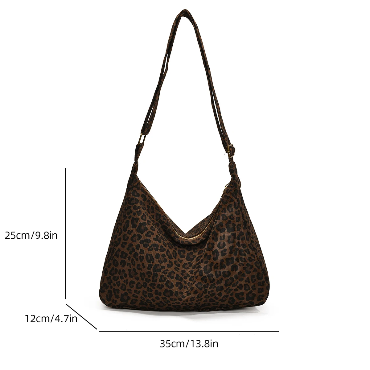 Trendy Casual Soft Textile Women's Shoulder Bag Large Capacity Leopard Print Female Retro Crossbody Bag For Commute Outings