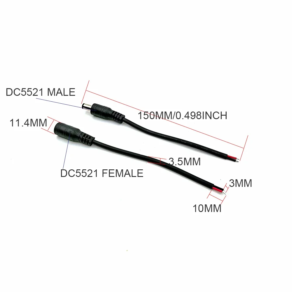 Black 5.5 x 2.1mm DC Plug Jack Connector Cable Pigtail 12V Male Female 5.5*2.1 DC Adapter for 5050 3528 LED Strip Light