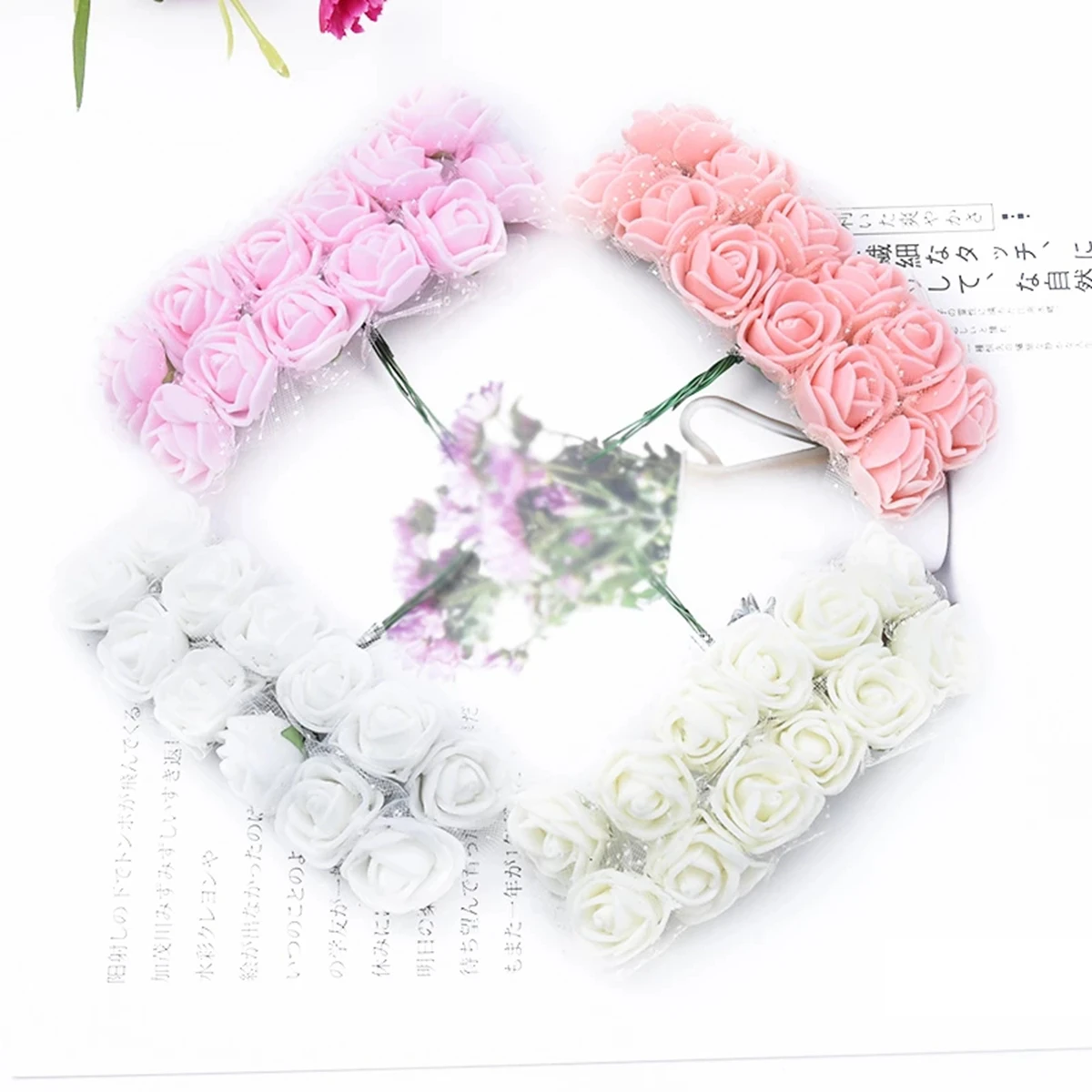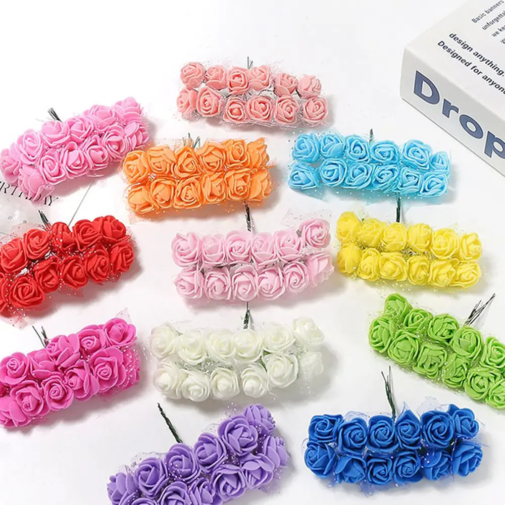 144pcs Artificial Flowers Simulation Foam Yarn Roses Outdoor Festival Garden Arch Wreath Wedding Table Home Room Diy Candy Boxes