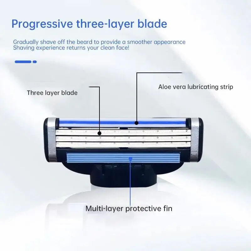 3 Razor Blade for Men Shaver Head Refills Cartridges with Lubrication Strip 3 Layres Blades Fast Cutting Face Beard