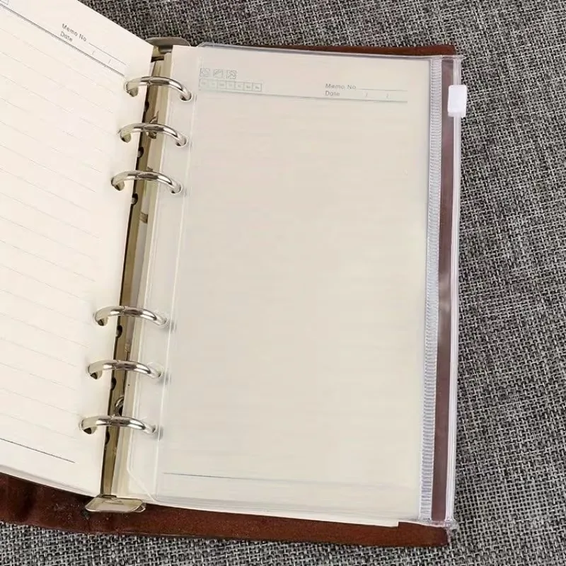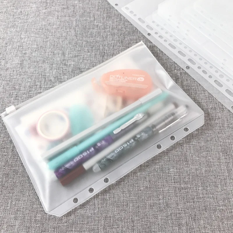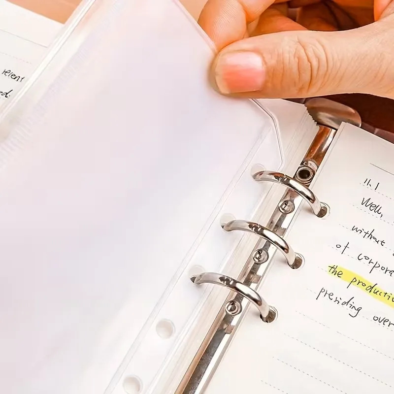 10Pcs A5 A6 A7 Binder Pockets Waterproof Zipper Pouch for 6 Ring Notebook Binder Clear Document Filing Bag Leaf Organizer Folder