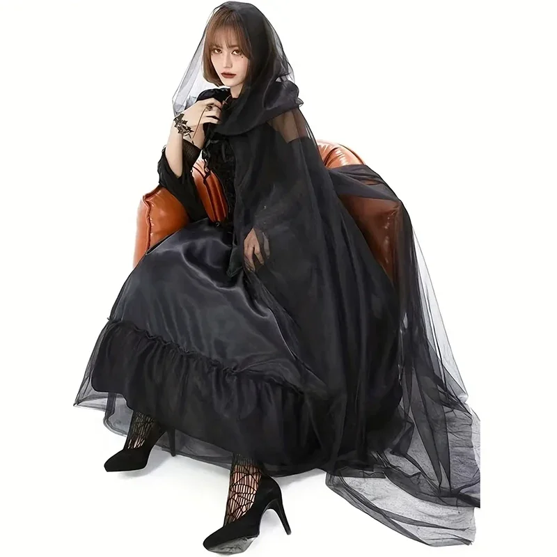 Black Bridal Shawl Witch Vampire Cosplay Cloak Halloween Double Cloak Game Party Costume Props Holiday Dress Up