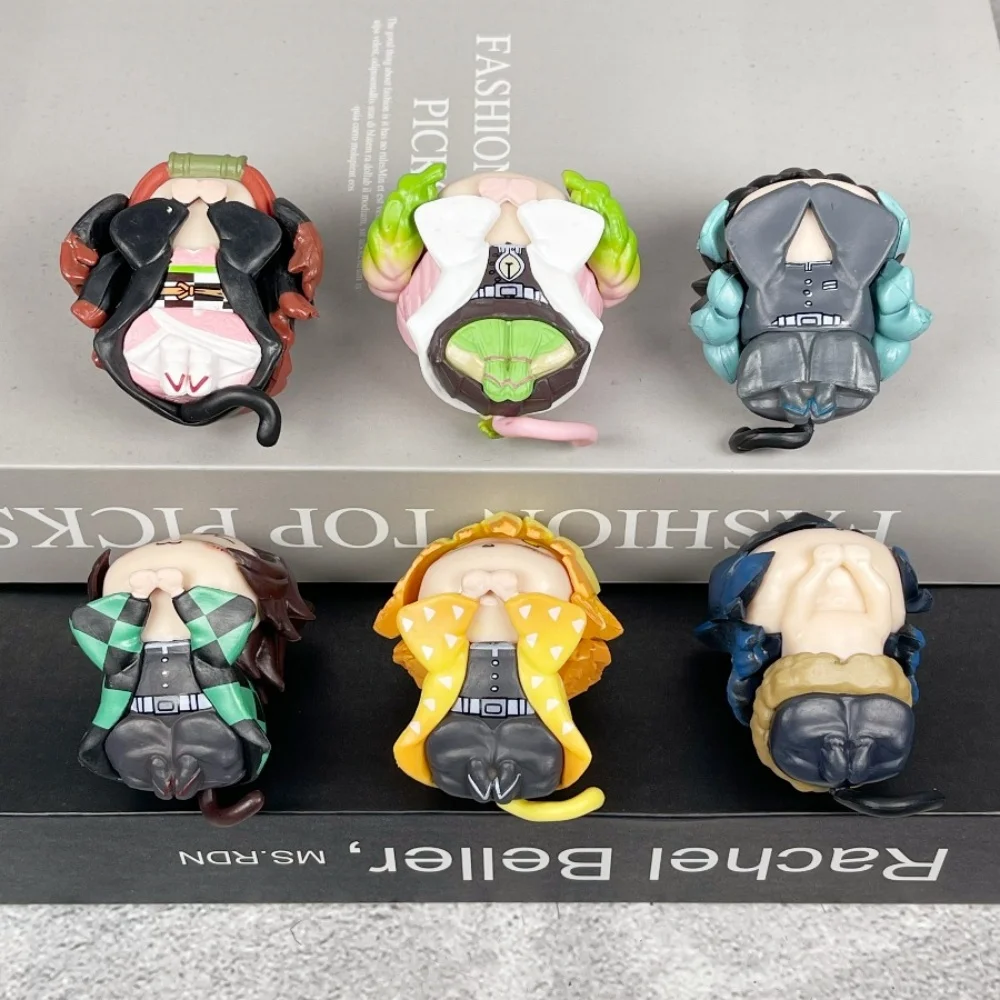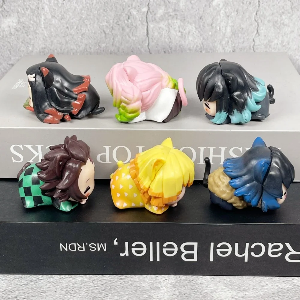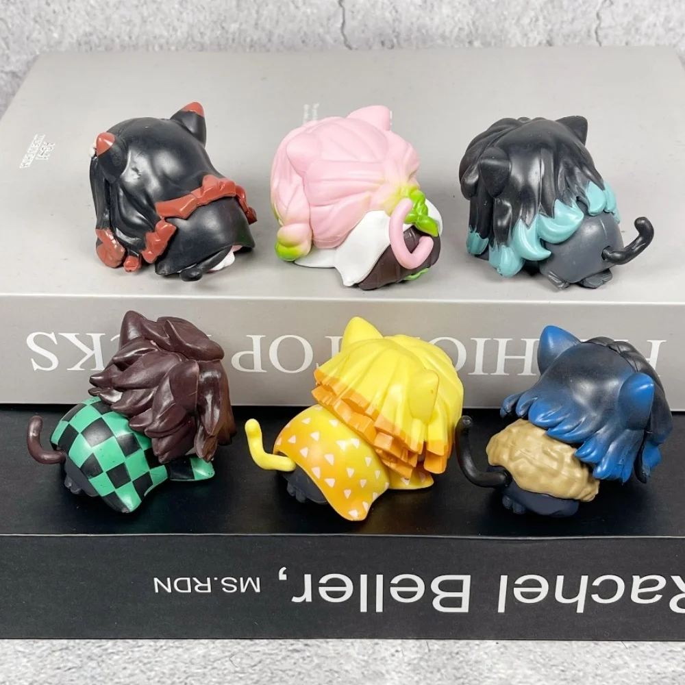 6pcs Cute Cat Demon Slayer Figure Sleeping Kimetsu No Yaiba Anime Kawaii Action Figurine House Decoration Desk Accessories Gift