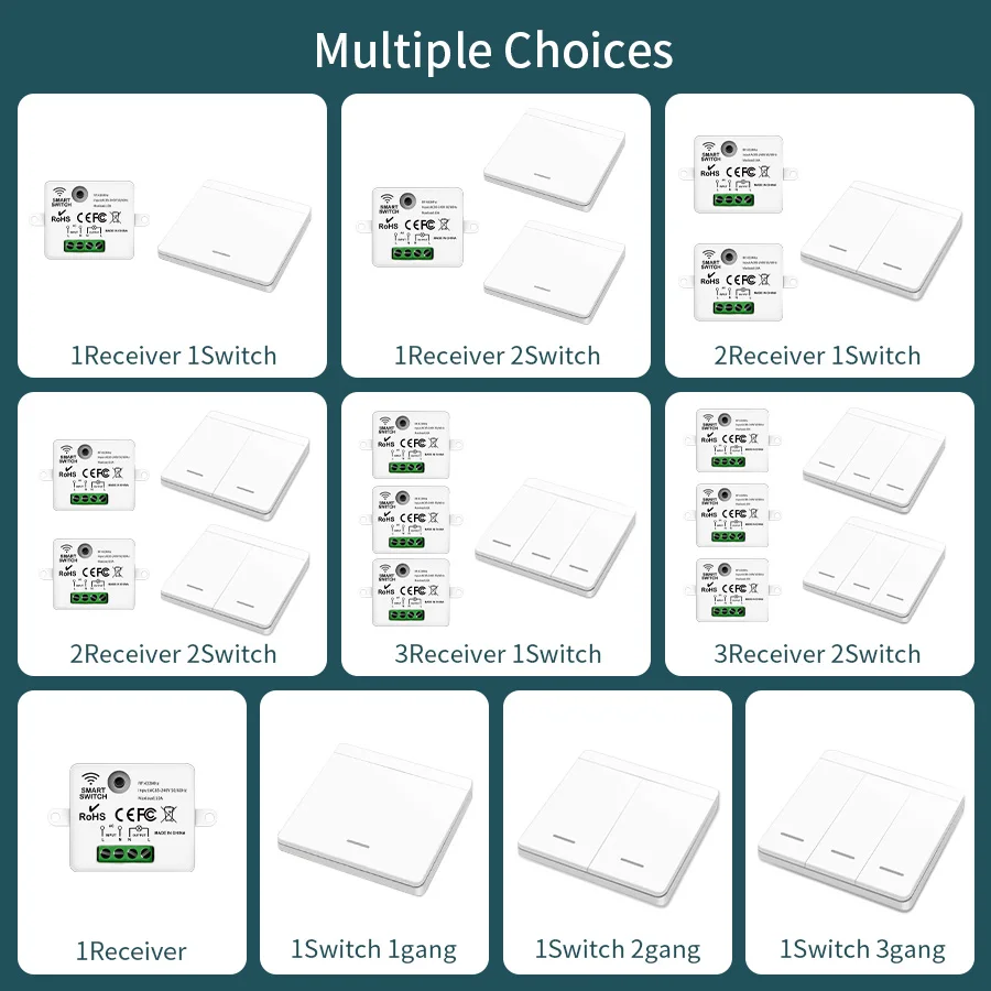 86 Wireless Smart RF 433Mhz Wall Panel Led Light Lamp Switch Remote Control 1/2/3gang Mini Relay Receiver Home