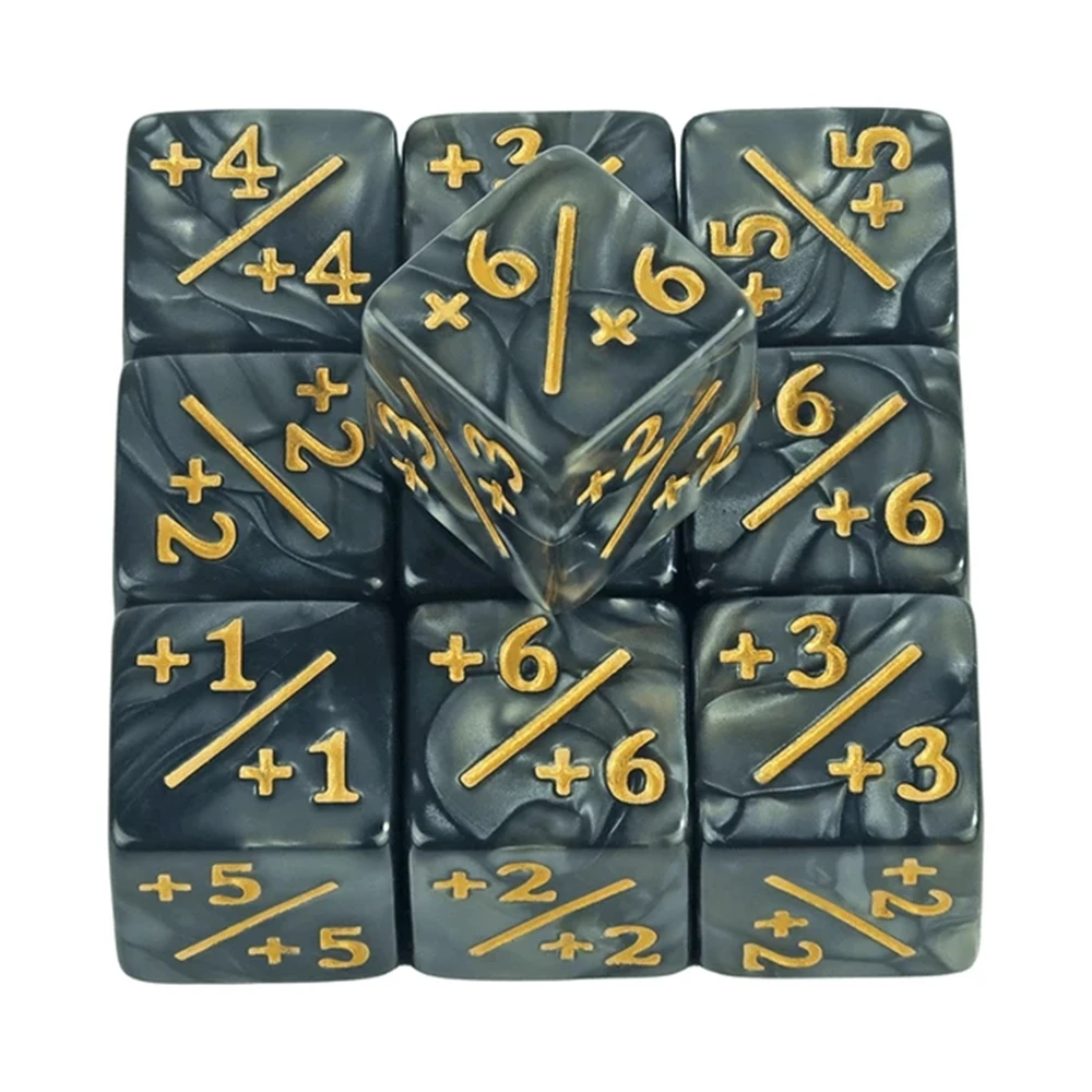 10pcs/set Six Sided Dice Set D6 Counters +1/+1 and -1/-1 Set for Math Teaching ,Kid Arithmetic Toys, Card Game Accessories