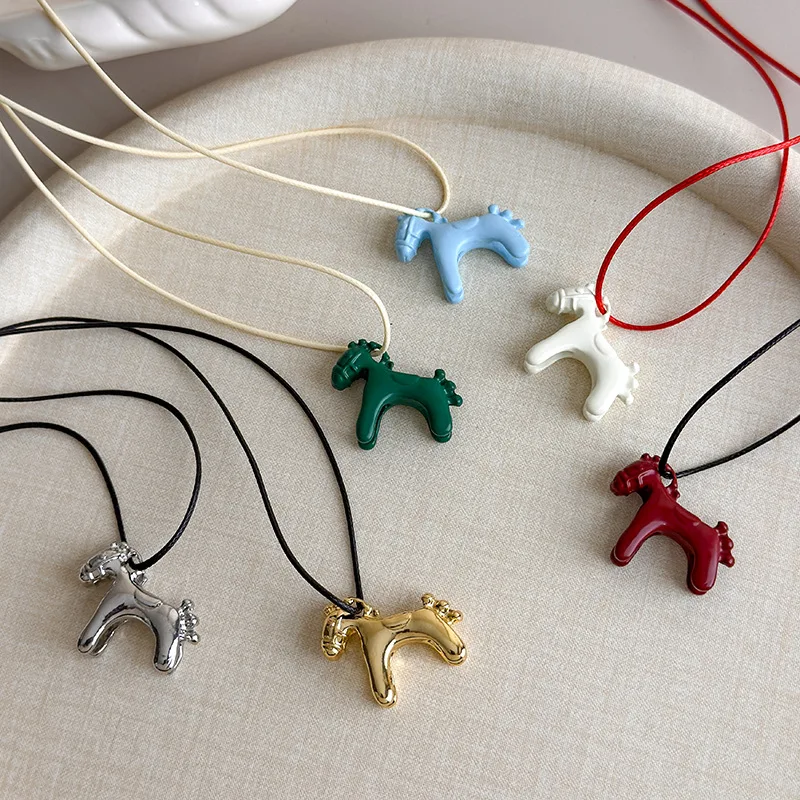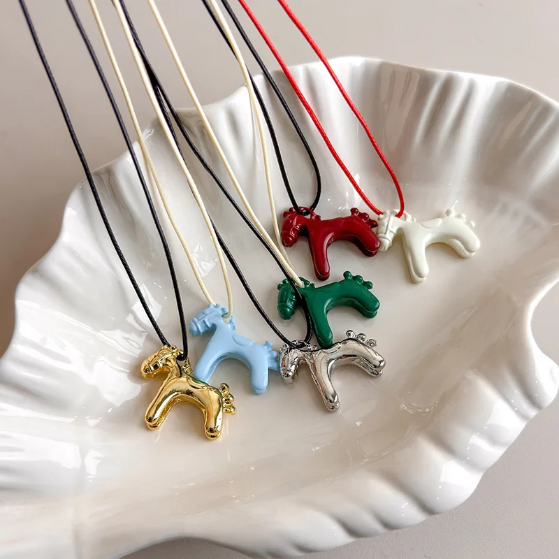 Minimalism Enamel Drip Glaze Colorful Horse Pendant Long Necklace Adjustable Sweater Chain Simple Jewelry Accessories Gifts