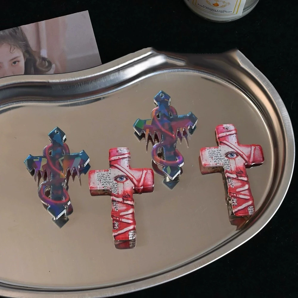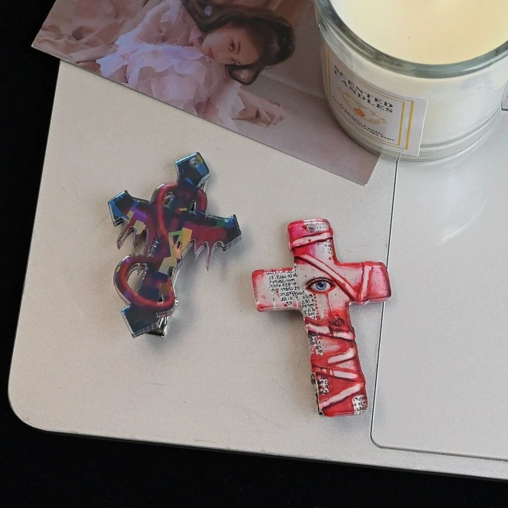 Gothic Punk Cross Hair Clip Subculture Y2k Horror Bloodstain Hairpin Rock Fashion Acrylic Headwear Halloween Hair Accessory