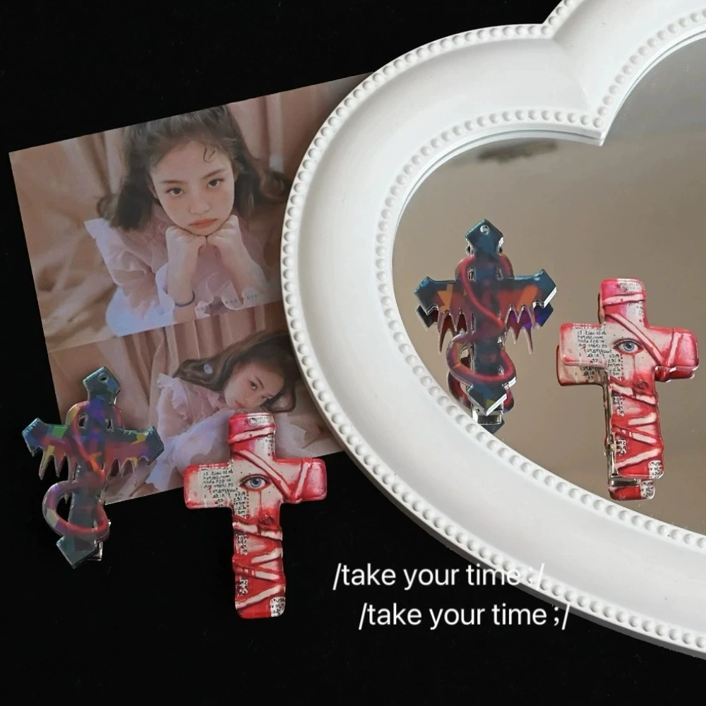 aliexpress , ali , shop , ali shop , online , prodavnica , online shop , online prodavnica , kupujem , prodajem , Gothic Punk Cross Hair Clip Subculture Y2k Horror Bloodstain Hairpin Rock Fashion Acrylic Headwear Halloween Hair Accessory