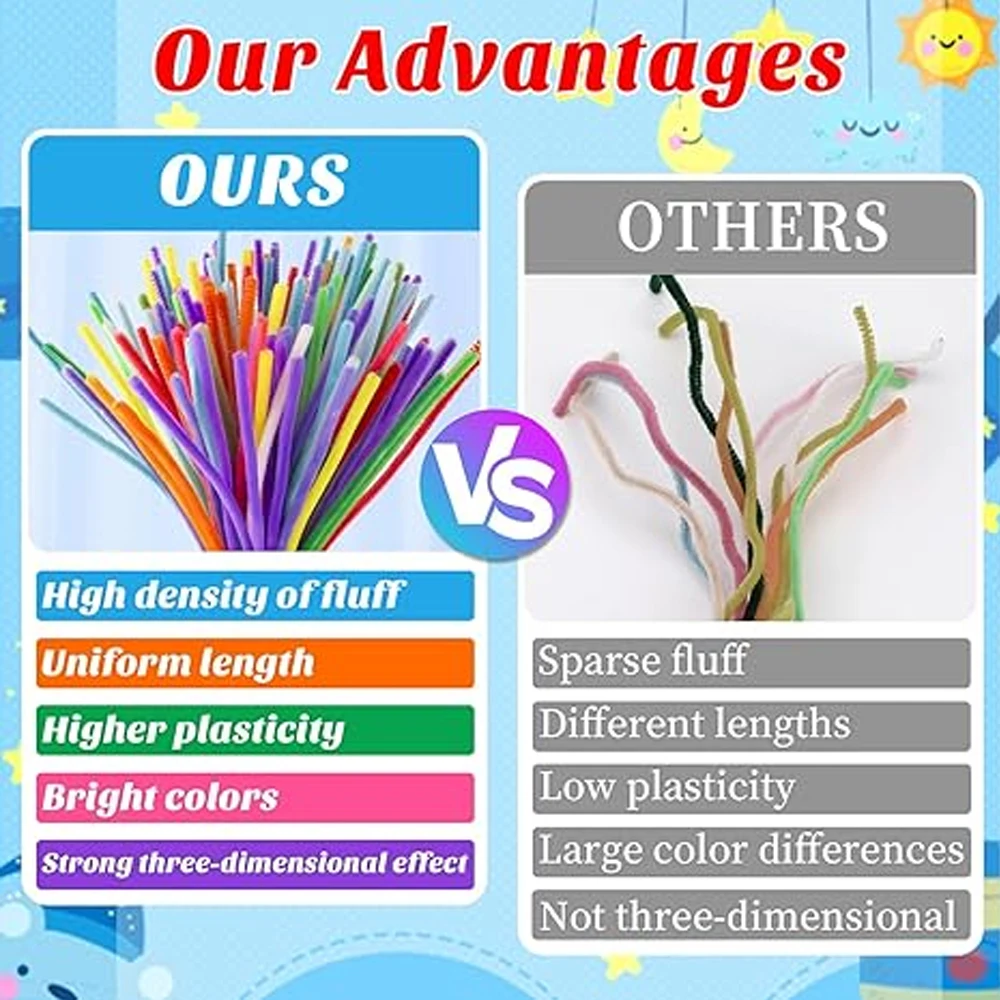100-1500Pcs Pipe Cleaners Craft Multicolor Chenille Stems Twisting Sticks Plush Stick for Kids DIY Arts Handcraft Decor