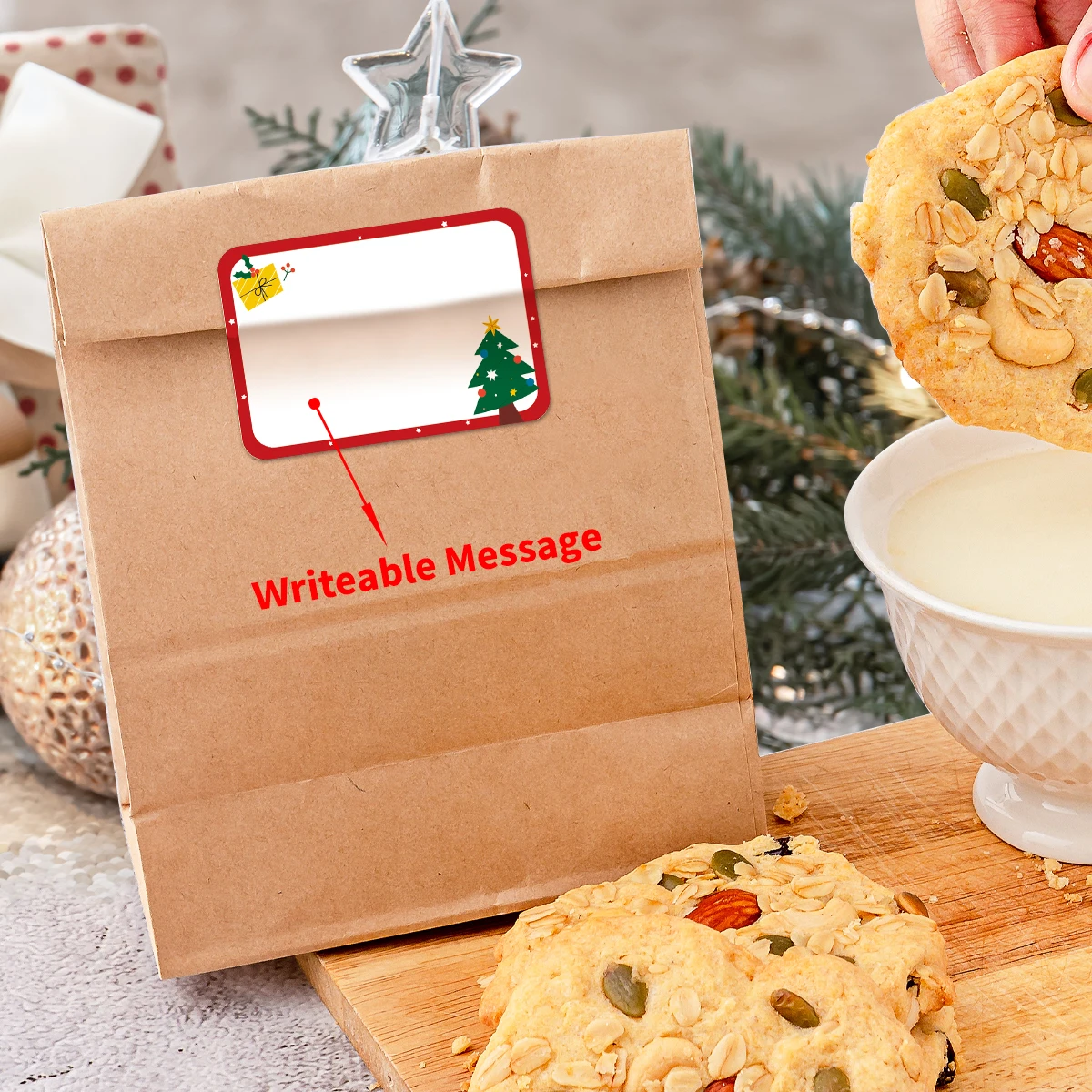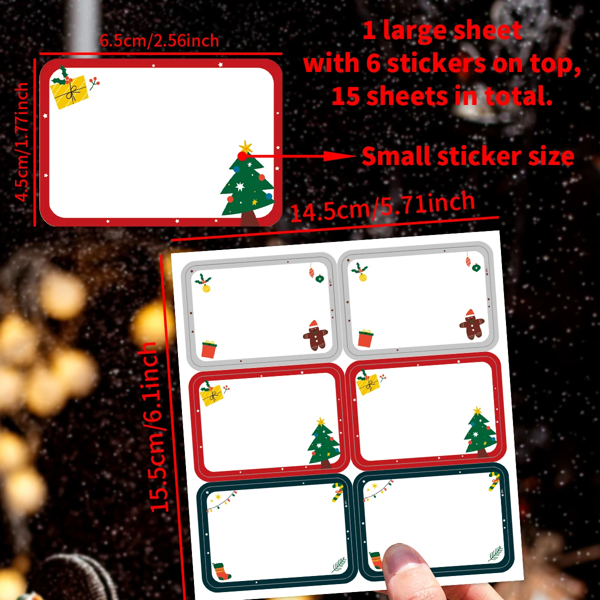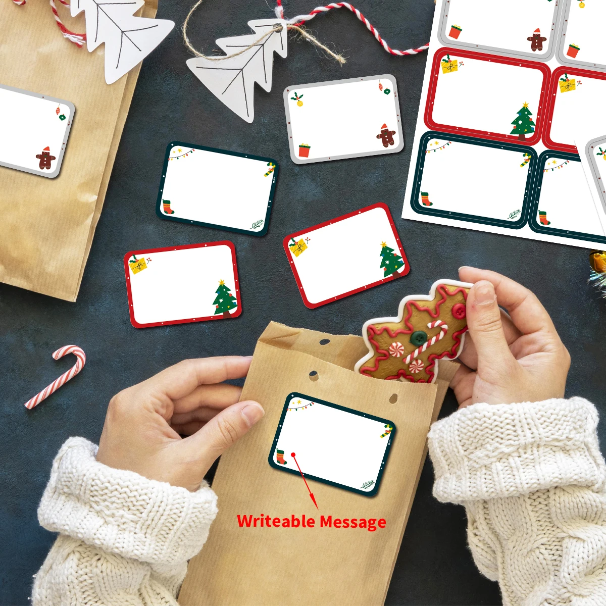 90pcs/15sheets Christmas Stickers Labels,Writeable Xmas Gift Tags For Packaging Decor,Christmas Tree Cookie Bag Box Party Favor