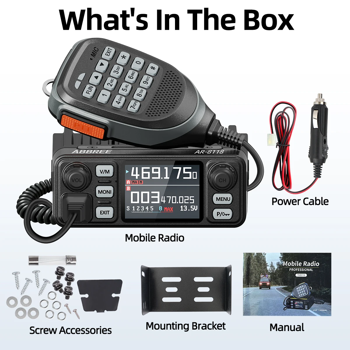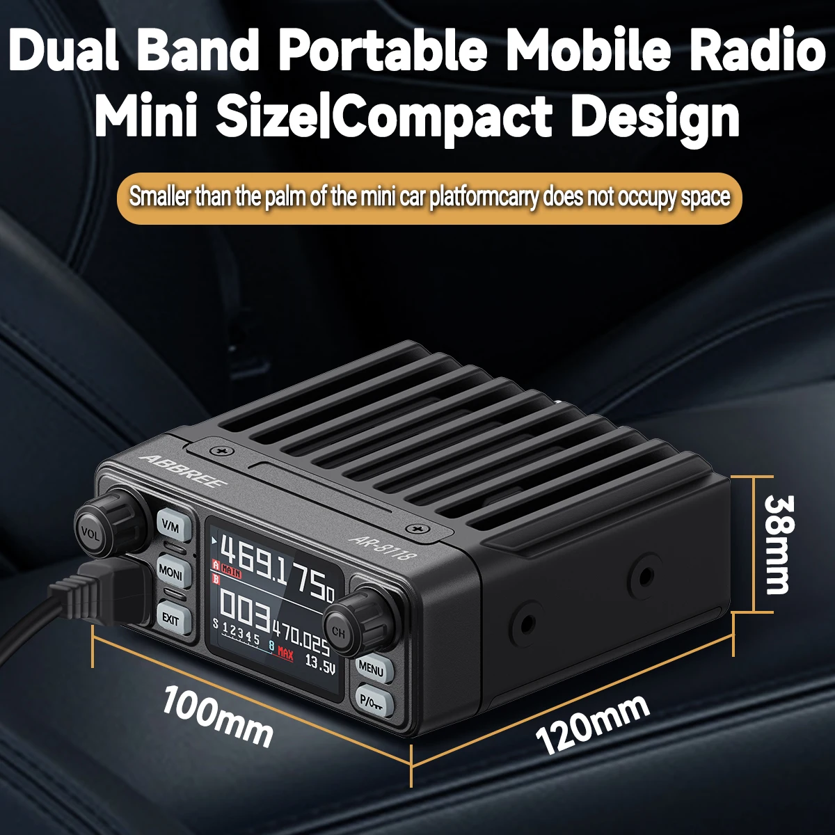 ABBREE AR-8118 25W Dual Band Mini Mobile Radio HD Voice 200CH Long Range VHF UHF Anti-Interference Dual PTT HD Vioce Car Radio