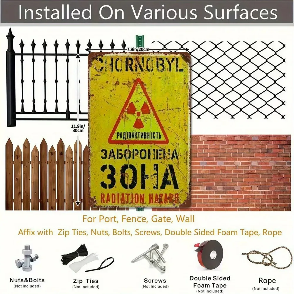 Nuclear Radiation Warning Sign - 20x30cm Durable Metal Plaque Wall Decor, Chernobyl 30th Anniversary Memorial Office Home Man Ca