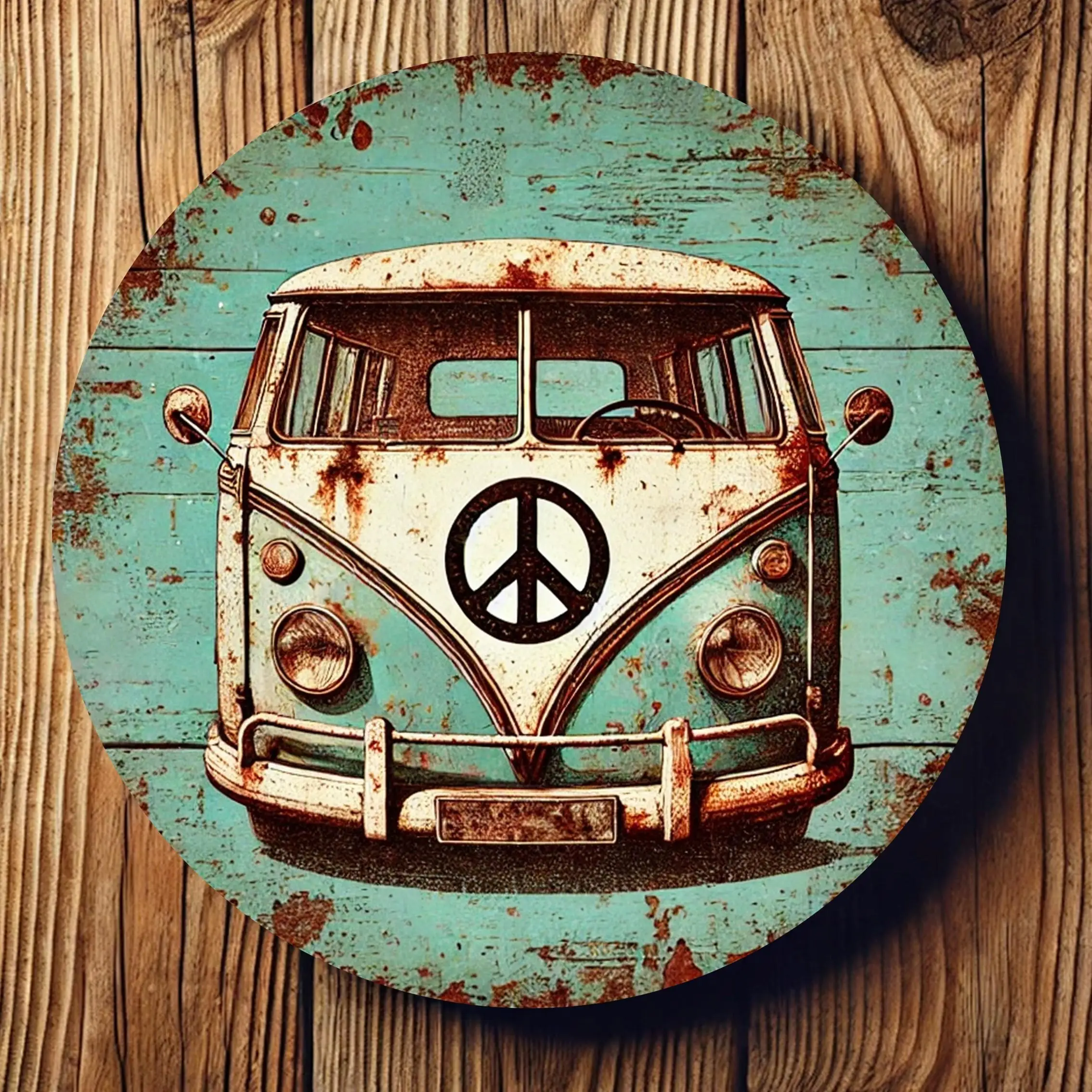 2D 1PC Wooden Disc Green Car Theme Logo 8 Inch Decorative Art Wall Plaque Bedroom Office Decoration