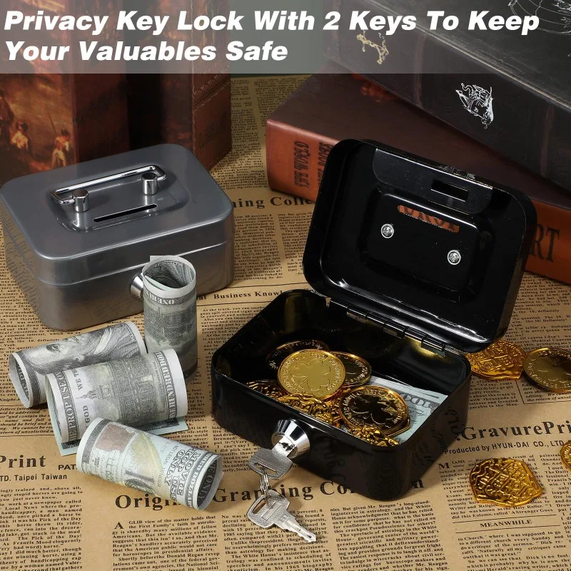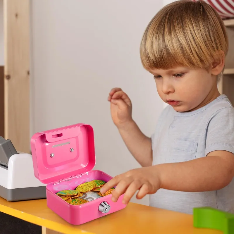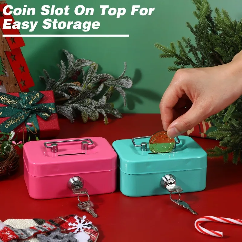 Portable Metal Money Safe Box Lockable Cash Box With Key Piggy Box Small Security Lock Box Sturdy Coin Boxes For Kids