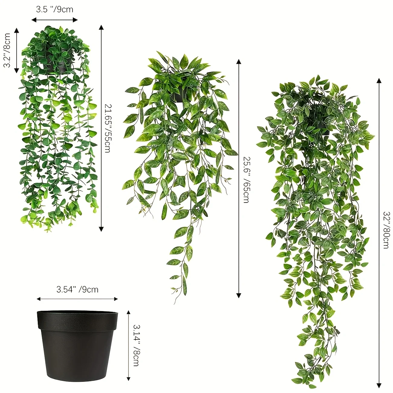 Artificial hanging plants, eucalyptus leaf vine fake potted plant set, for indoor and outdoor wall and home decoration