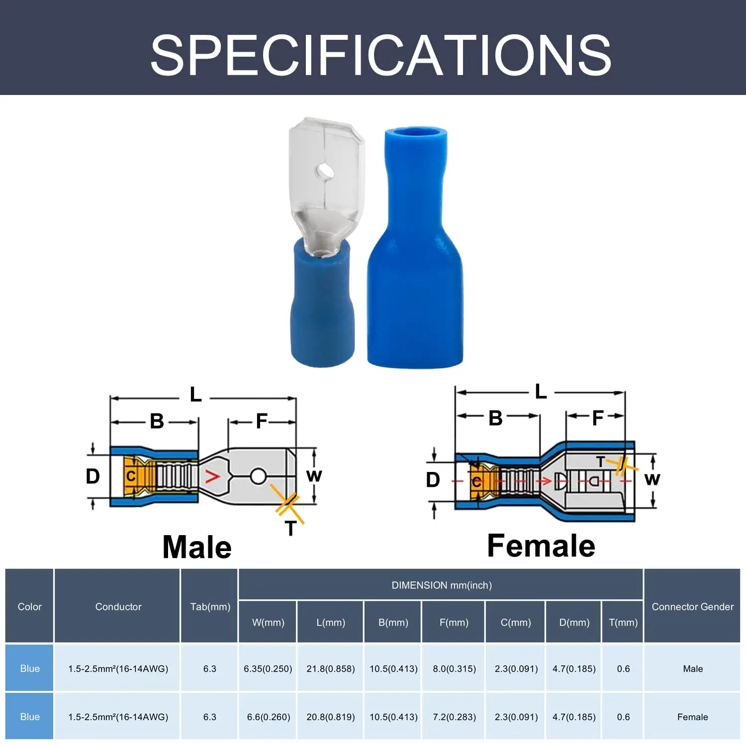 ALI shop - rezultati pretrage ... ... 60/80pcs male female insulated spade connector, 6.3mm 1/4" 22-16/16-14/12-10 awg- electrical quick disconnect wire connectors ::: 2021 ::: :::