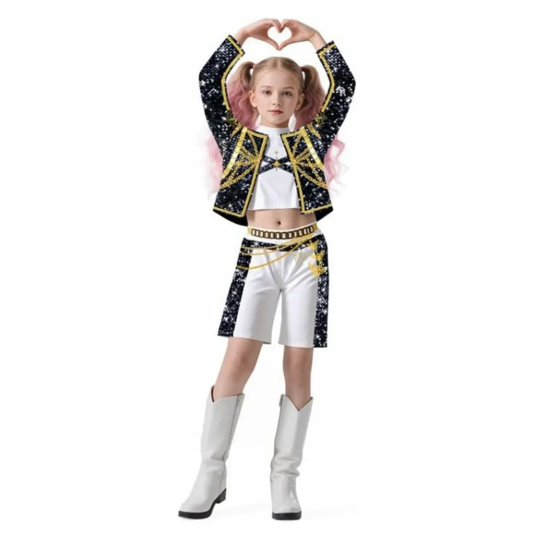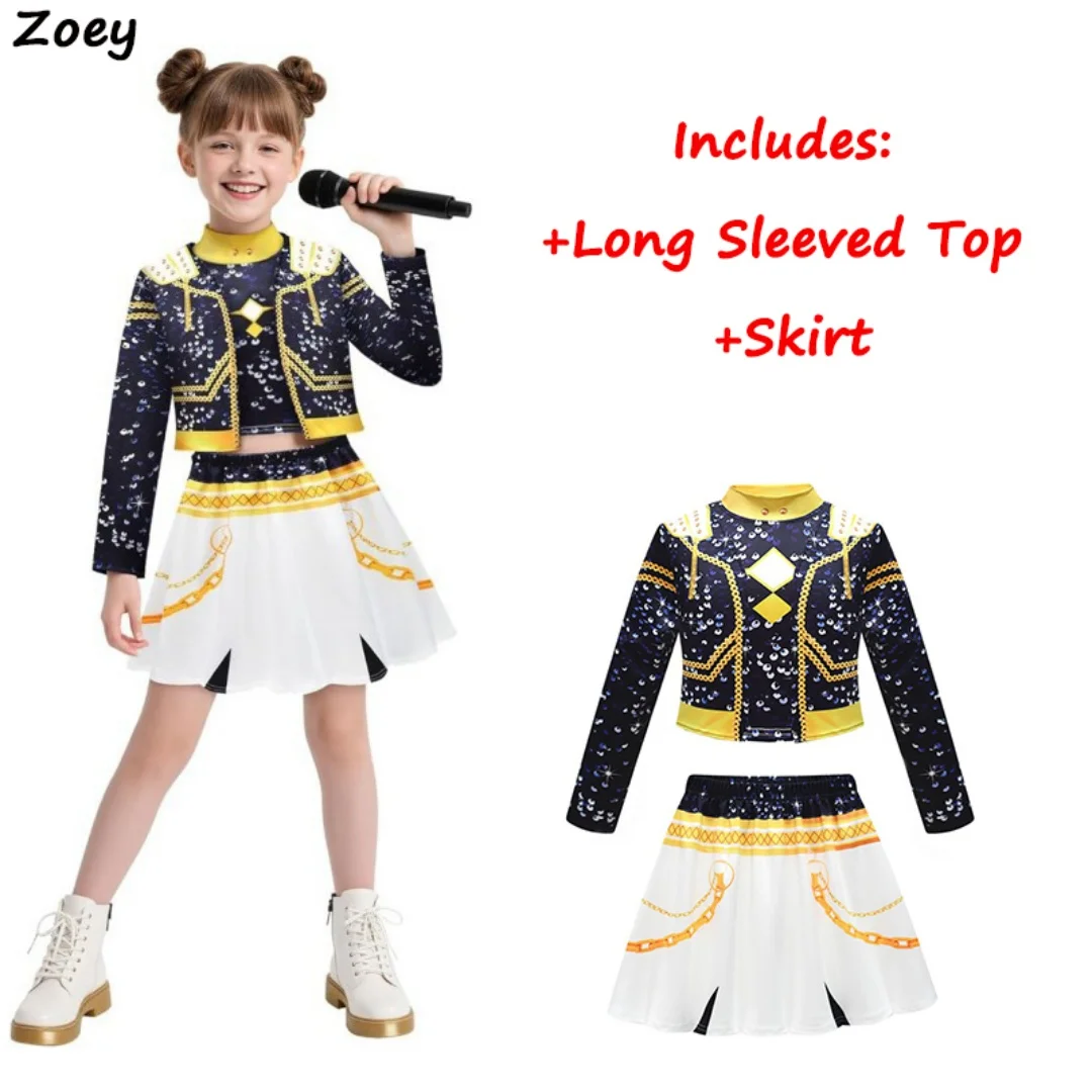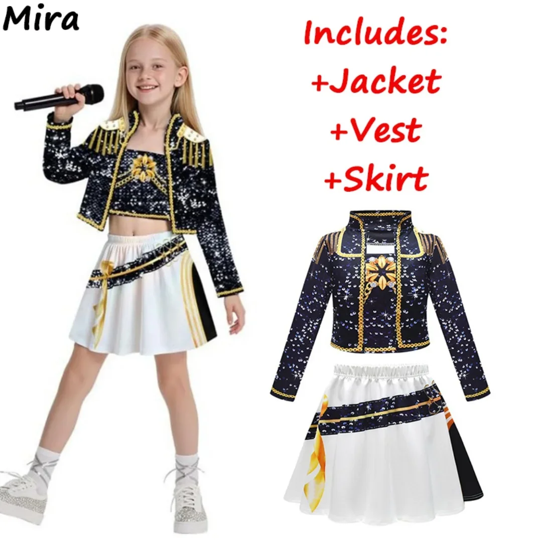 Kids Zoey Rumi Mira Stage Outfits Cosplay Girls Black Costume Uniform Halloween Party Role Playing Printed Fancy Dress Up Suits