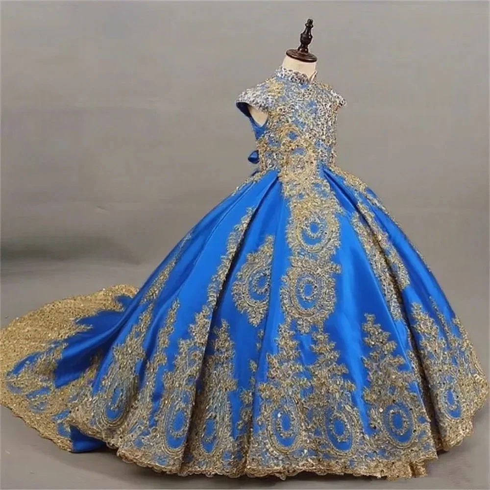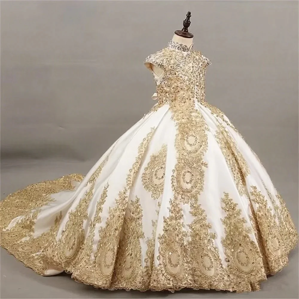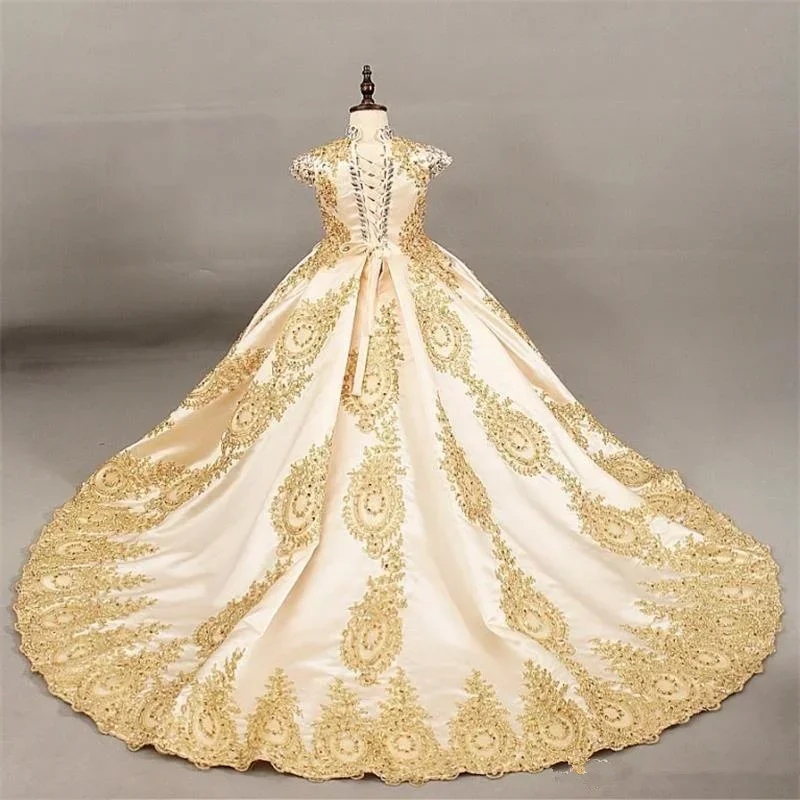 ALI shop - rezultati pretrage ... ... JDY Custom Girls' Sleeveless Ball Gown with Intricate Gold Lace Embroidery & Long Train - Elegant Princess Dress for Special Occ ::: 2021 ::: :::