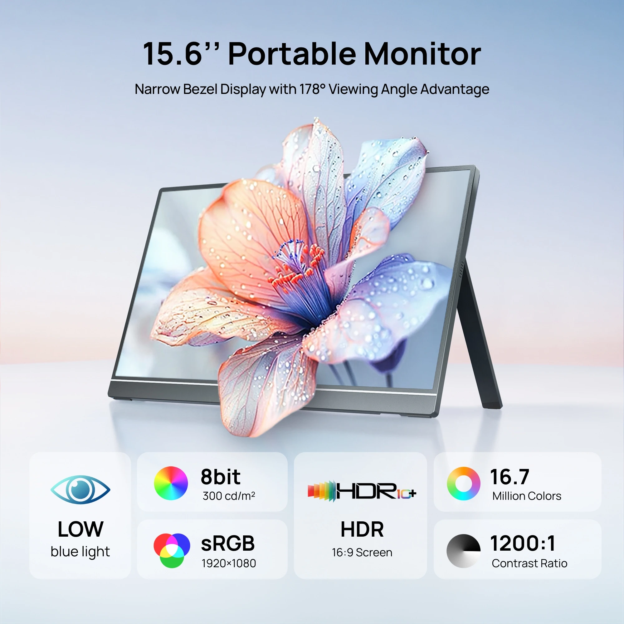 ARZOPA 15.6 inch Portable Monitor FHD 1080P IPS USB-C Mini-HDMI External Second Screen for Mac Laptop PC Switch Xbox PS4/5 Xbox