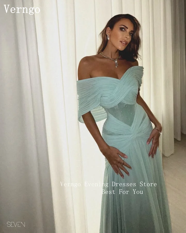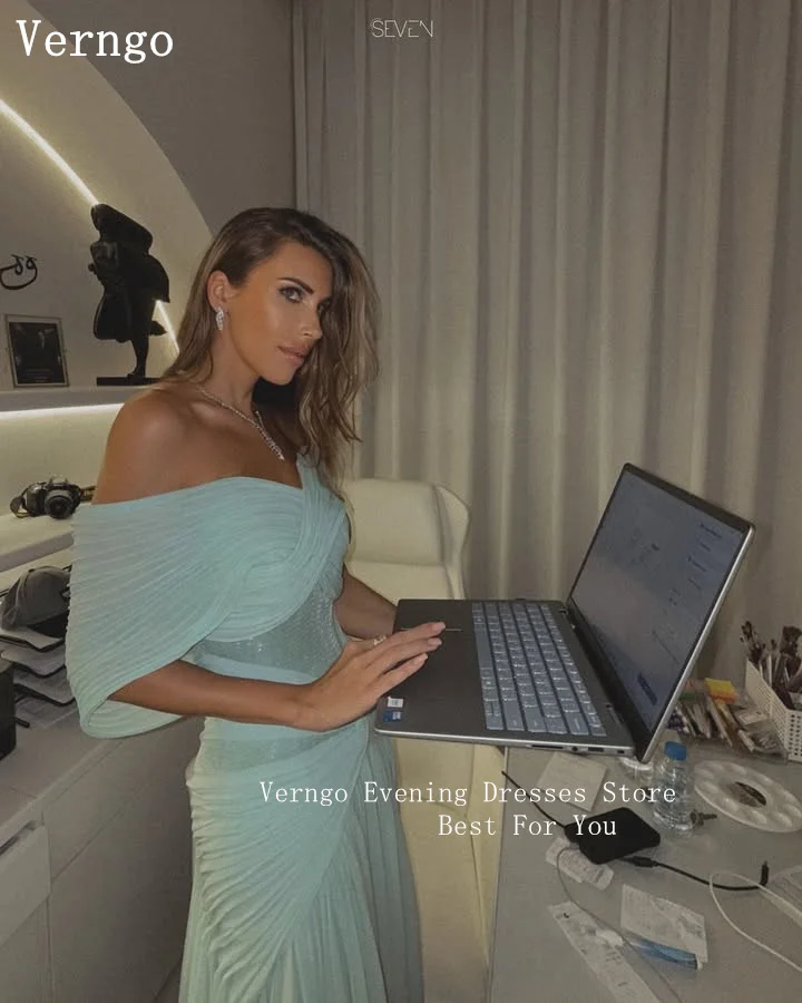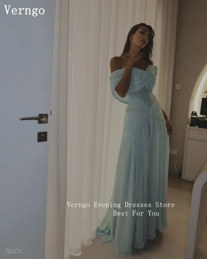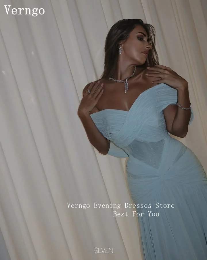Verngo Blue Chiffon Evening Dress Off The Shoulder Mermaid Formal Occasion Dress Saudi Arabia Prom Gowns Customized