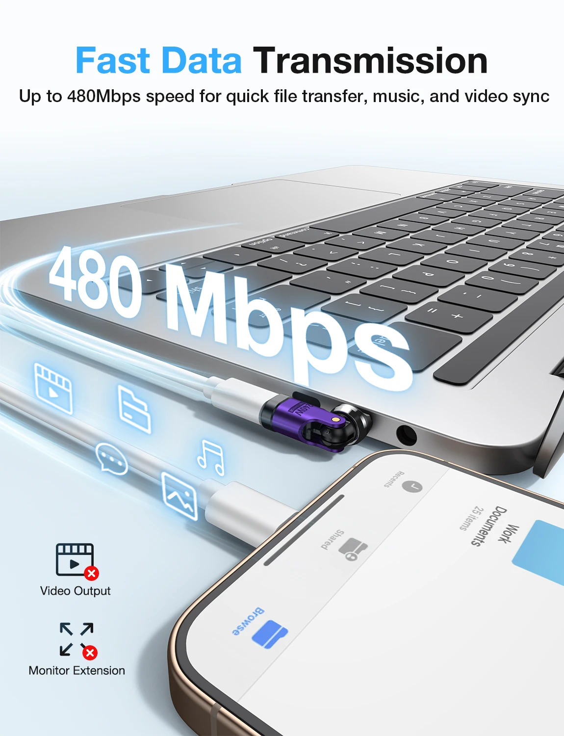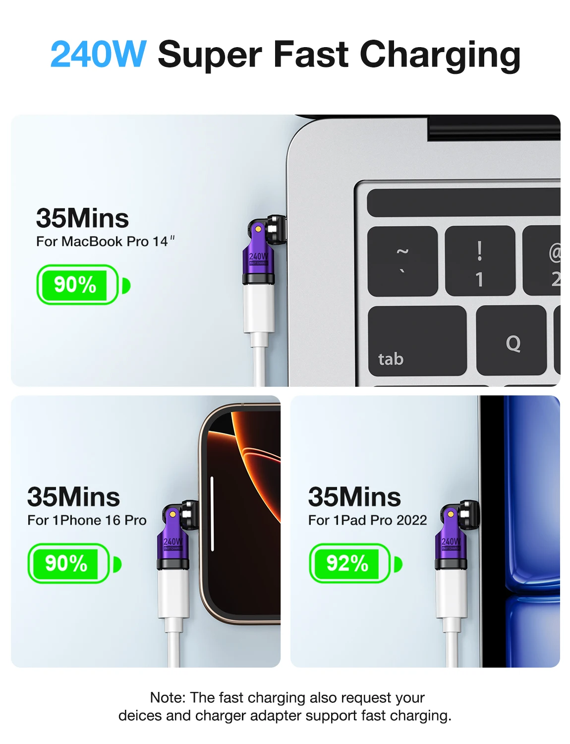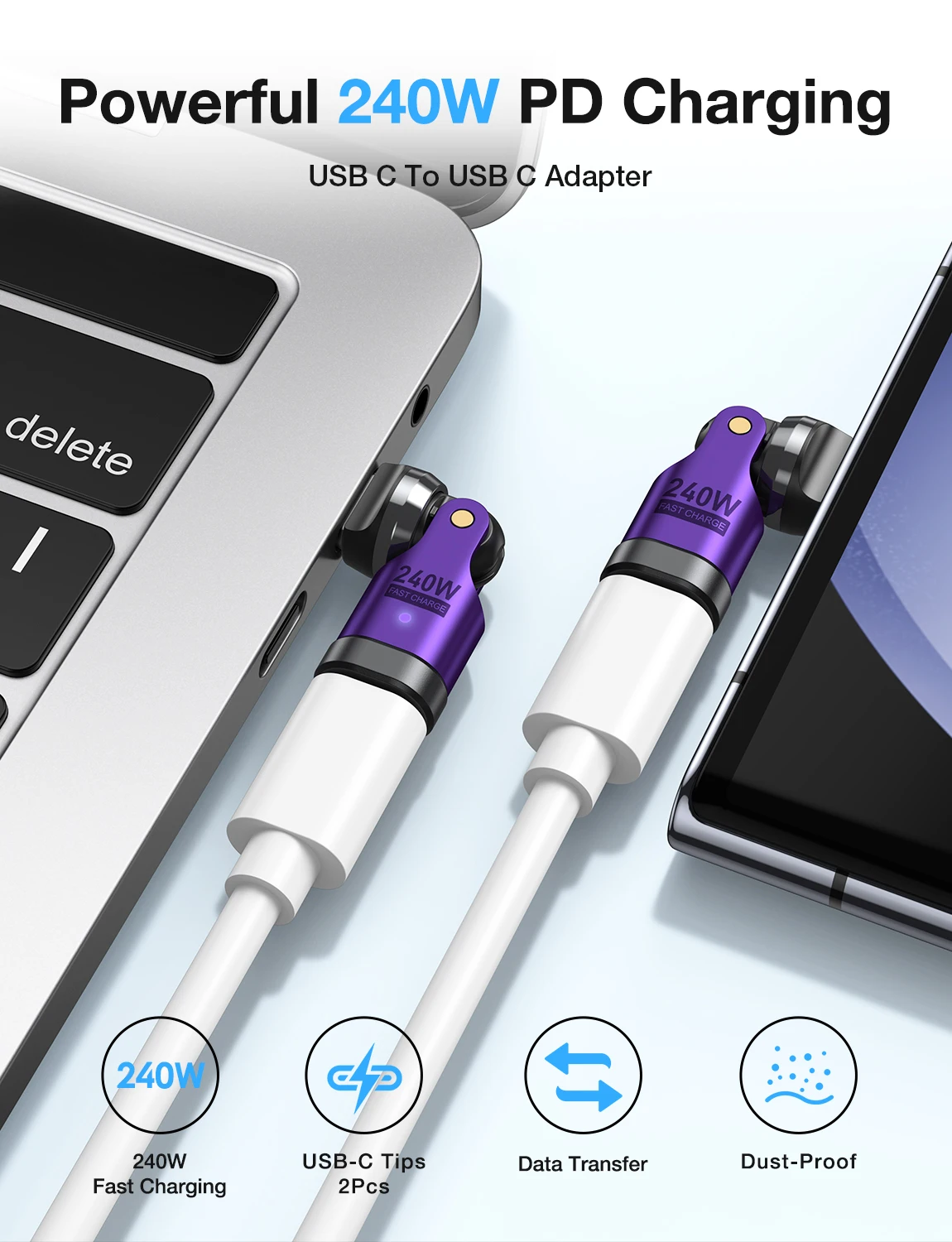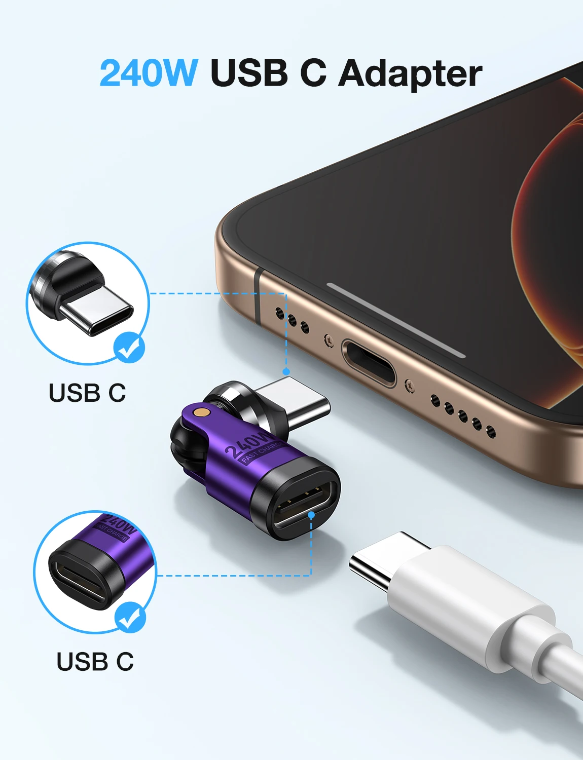 AUFU 540° 240W USBC To Type C Adapter OTG Fast Charge Cable Adapter Type C Male To Female Converter For iPhone17 Macbook Laptop