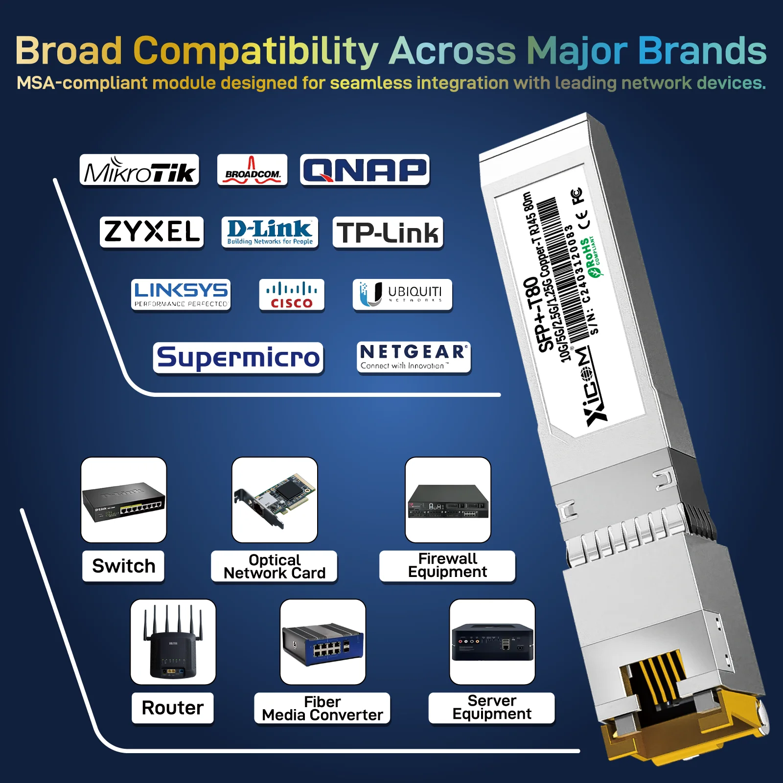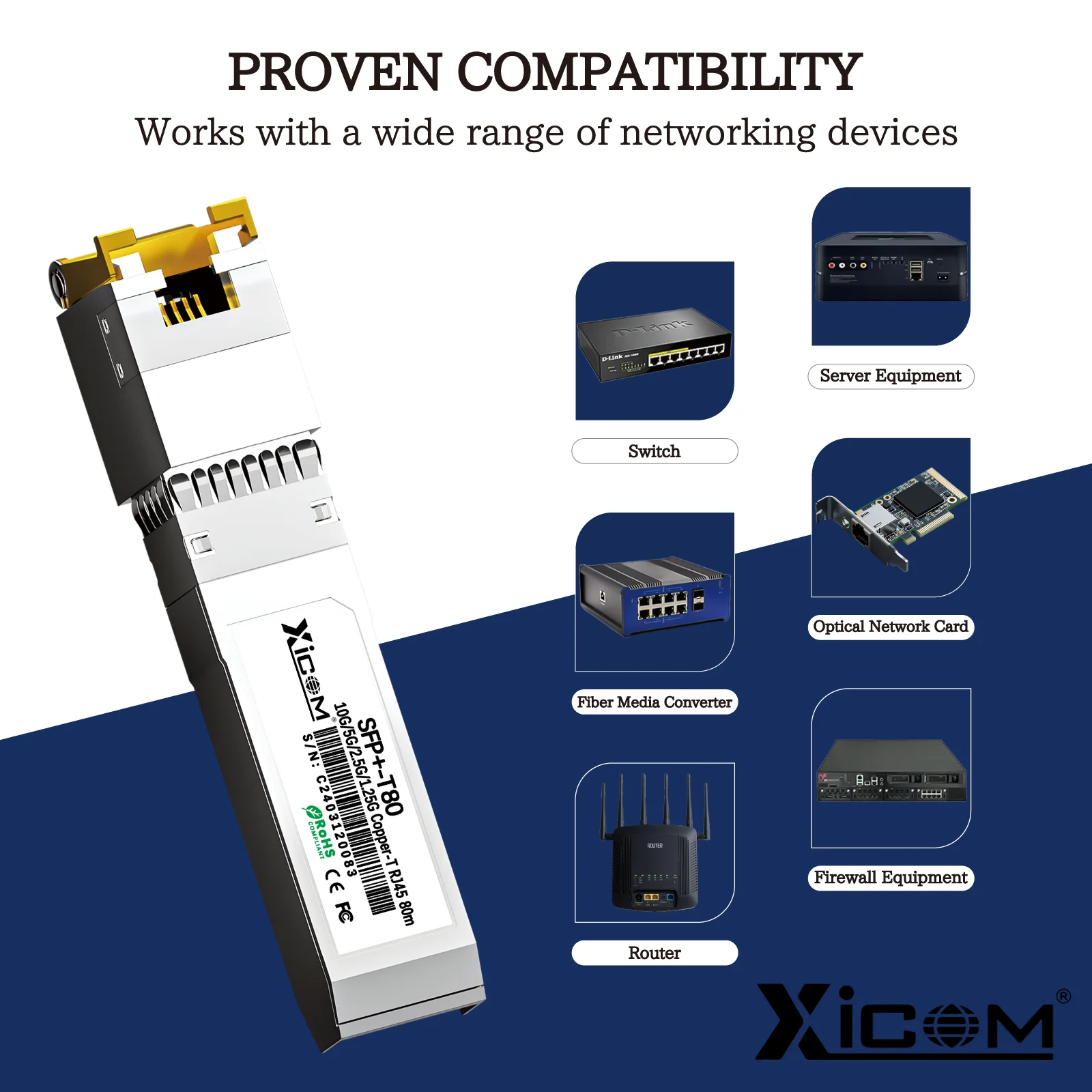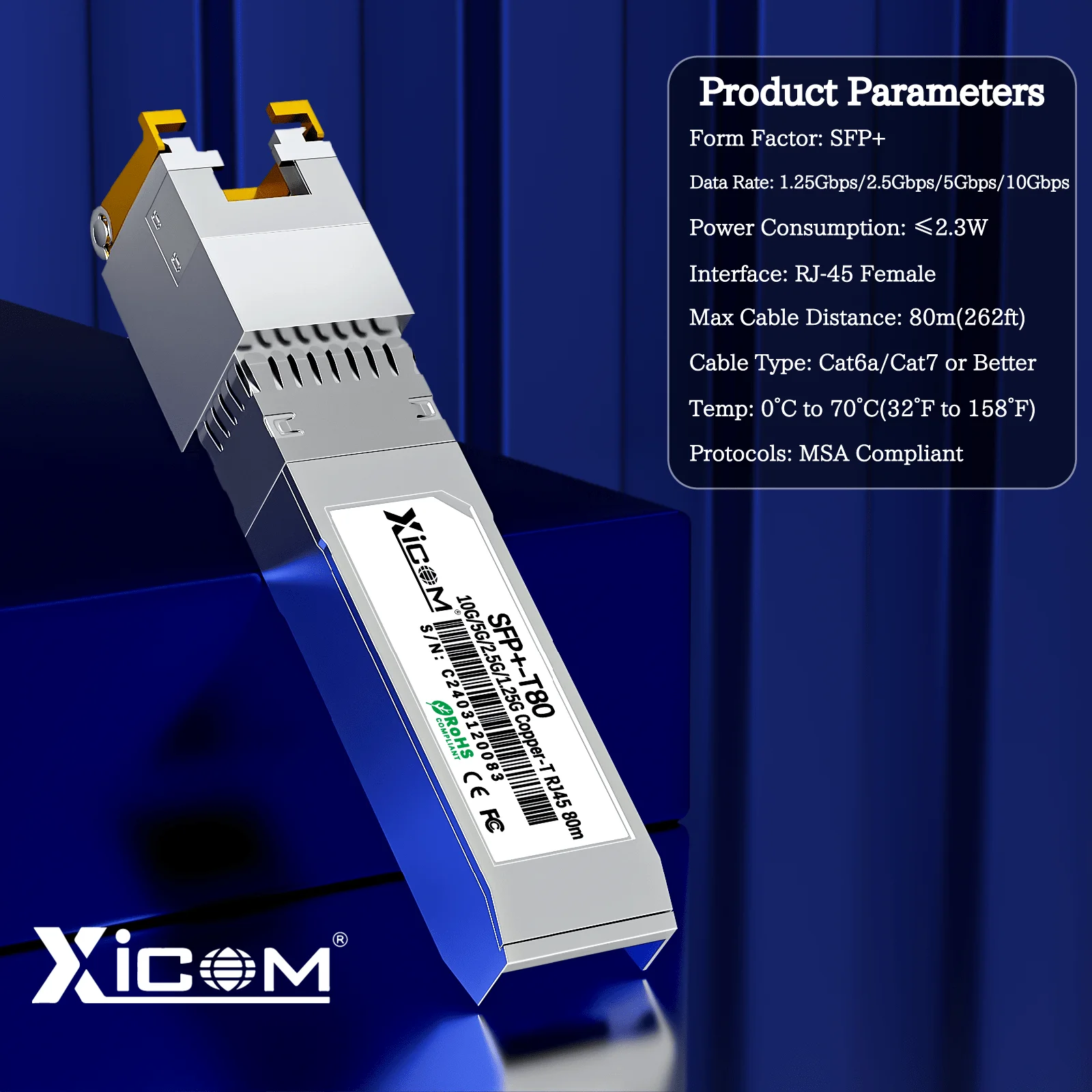 Xicom 10G SFP+ RJ45 Copper Transceiver SFP Module 80M RJ45 Port 10G/5G/2.5G/1.25G Compatible with Cisco/Mikrotik Ethernet Switch