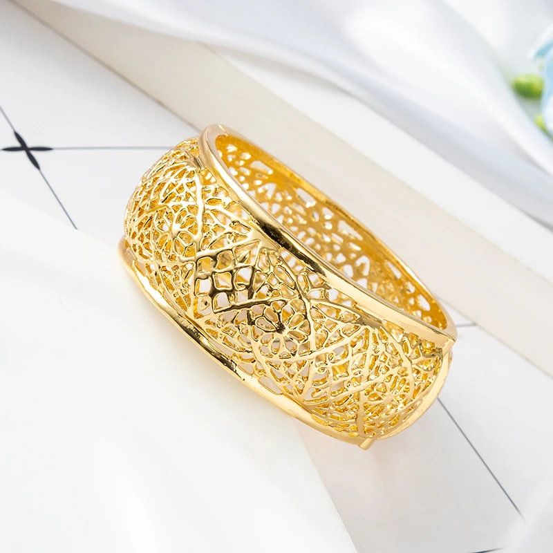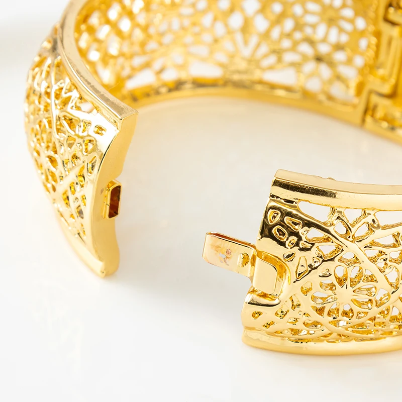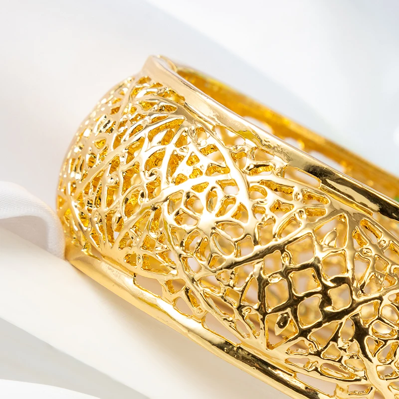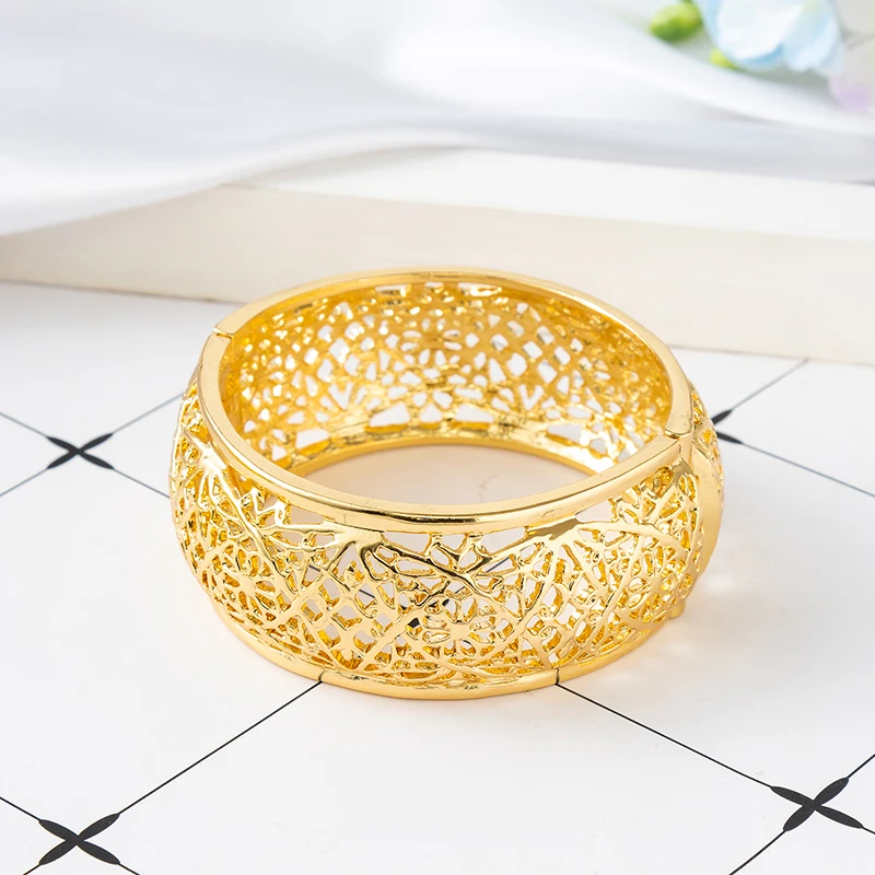 Exquisite Gold Hollow - Out Filigree Bracelet: Intricate Pattern, Elegant Accessory For Parties & Daily Wear
