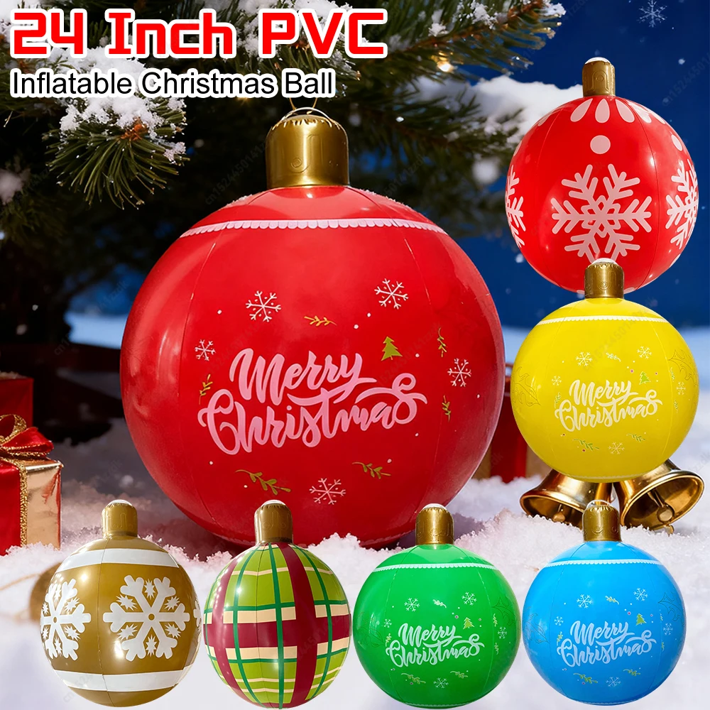 24 Inch Light Up PVC Inflatable Christmas Ball with Light Remote PVC Giant Inflatable Christmas Balls Christmas Decorations Ball