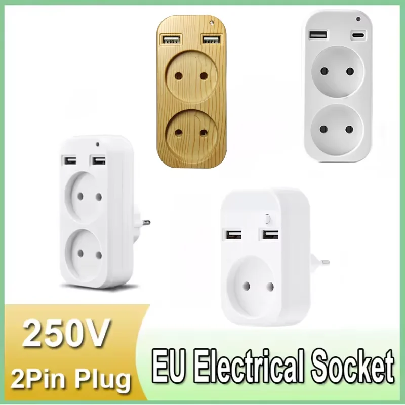 2025 EU Plug Power Strip Adapter Wall Double AC Socket Portable 2 USB Port for Mobile Phones 1200W 250V For Smartphones Tablets