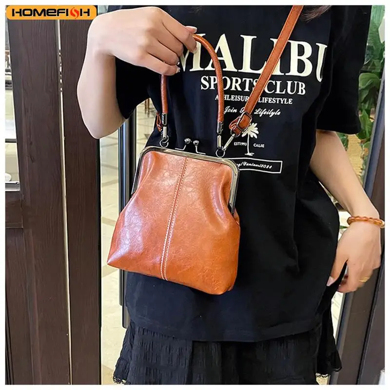 HOMEFISH Vintage Style Women Handbag Brown Versatile Designer Shoulder Bag PU Leather Ladys Shell Purses Crossbody Bags