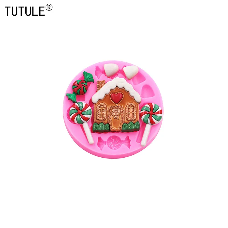 Christmas house Silicone Mold Christmas lollipop Fondant Sugar Cupcake Craft Molds candy drop glue decorative epoxy resin Mold