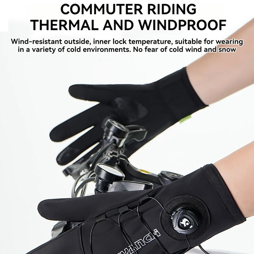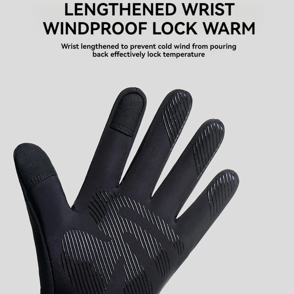 KoKossi Men Winter Waterproof Cycling Gloves Thermal Full Finger Touch Screen Fleece Gloves Non-slip Warm Windproof Motorcycle