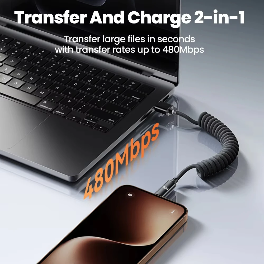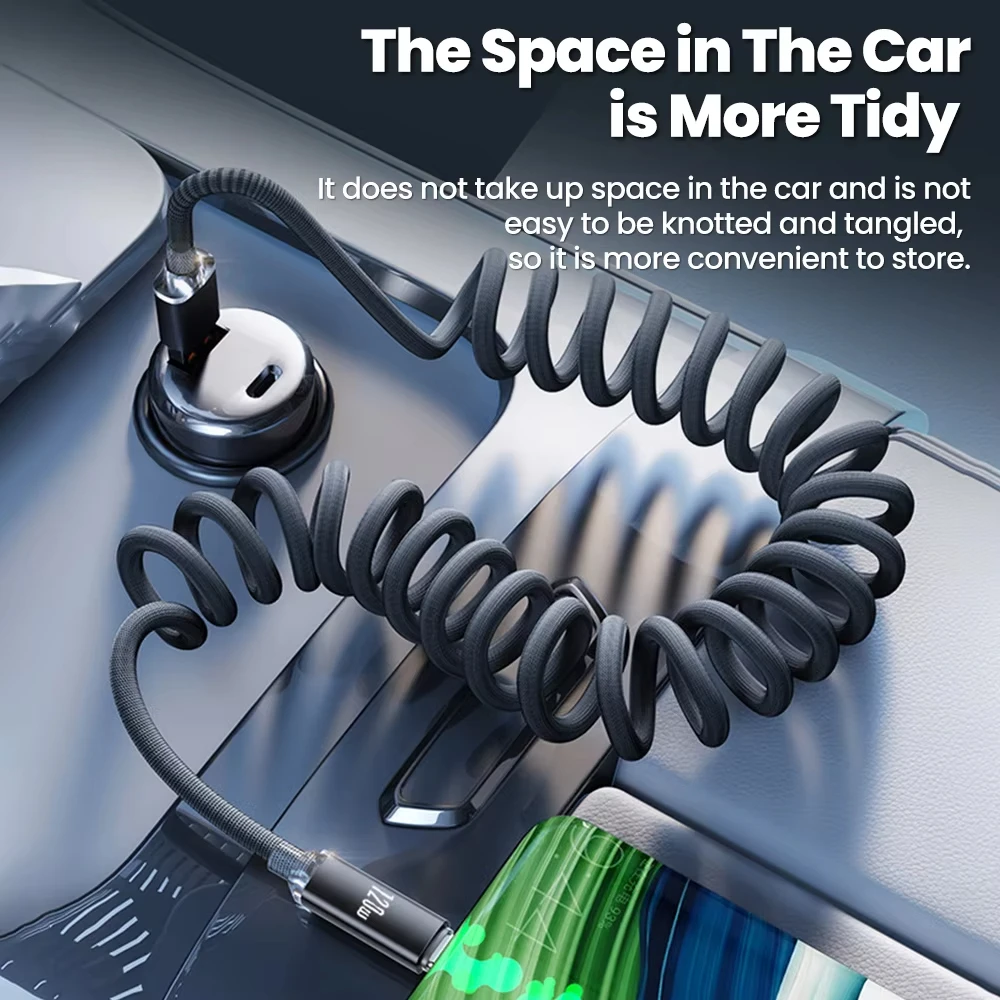 NNBILI 120W Car USBA to USB C Fast Charging For Samsung S26 Xiaomi Huawei USBC To UAB C Spring Telescopic Cable For iPhone 17 16