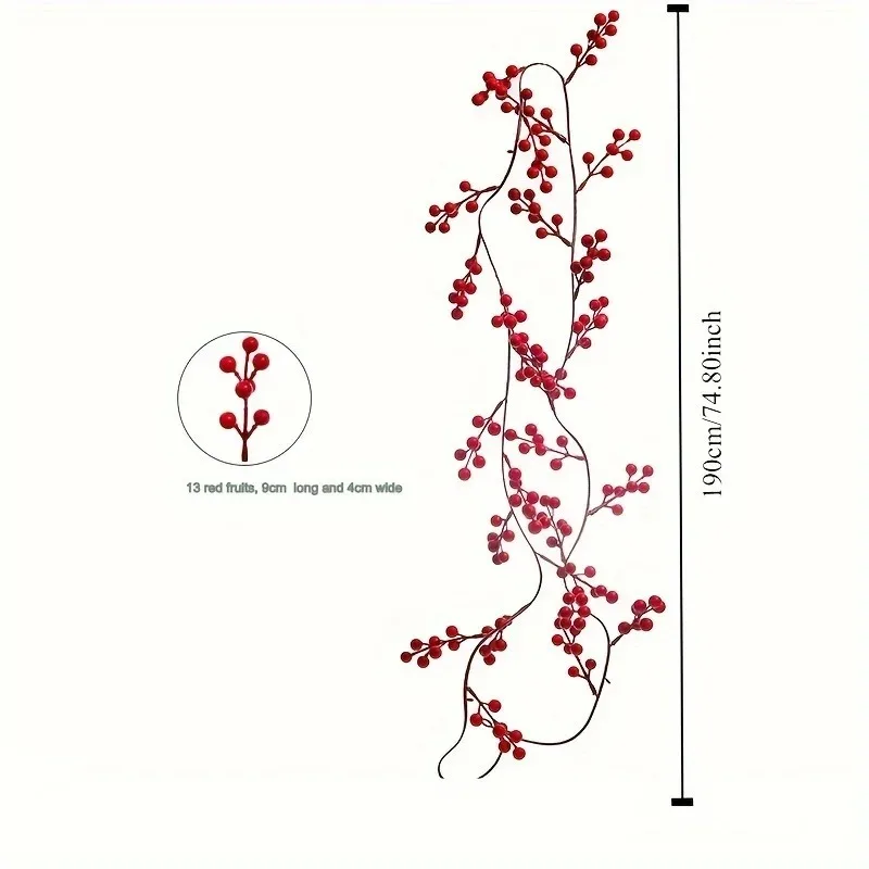 1pc Artificial Cranberry Vine, Christmas Suitable for Dining Table, New Year Celebration, Engagement Party Decor