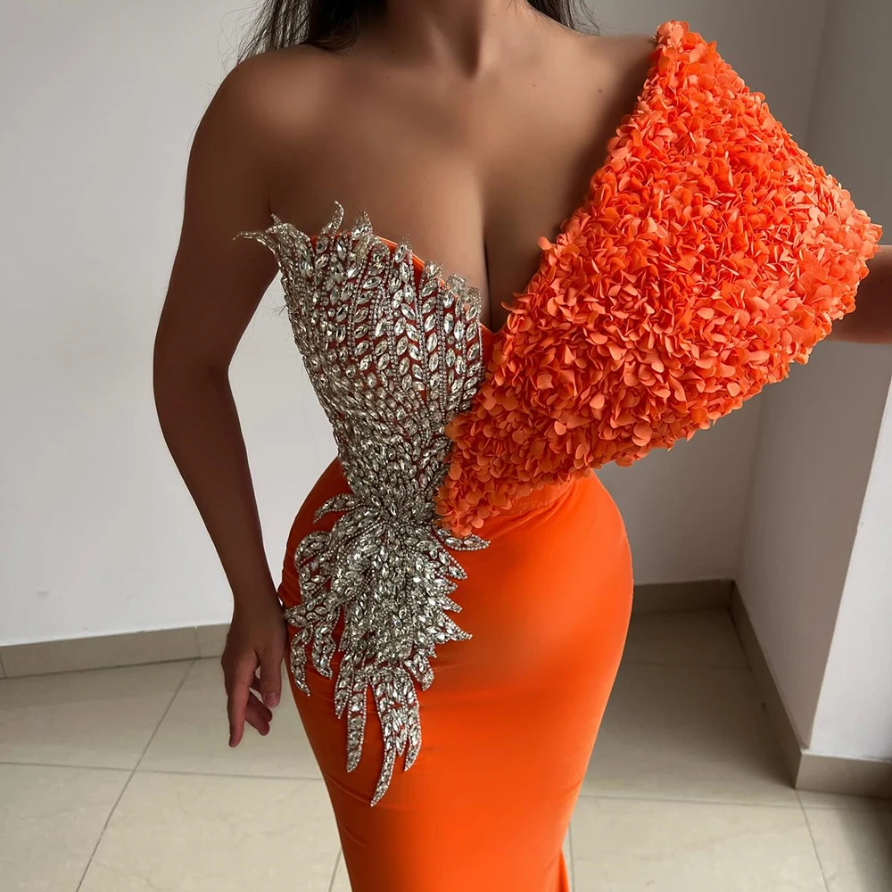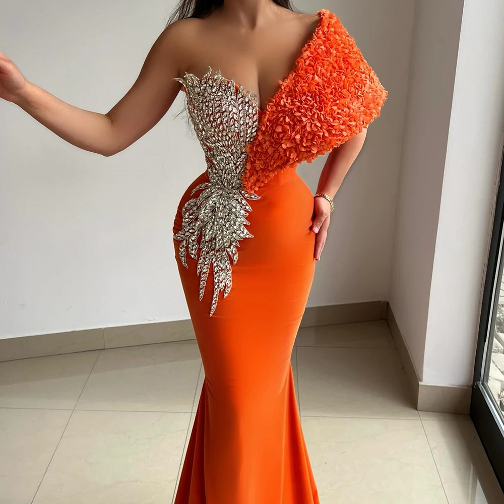 Customized A-line Evening Dresses Floor-length Off The Shoulder Sleeveless Prom Gown Fashion Crystal Flowers Draped Party Gown