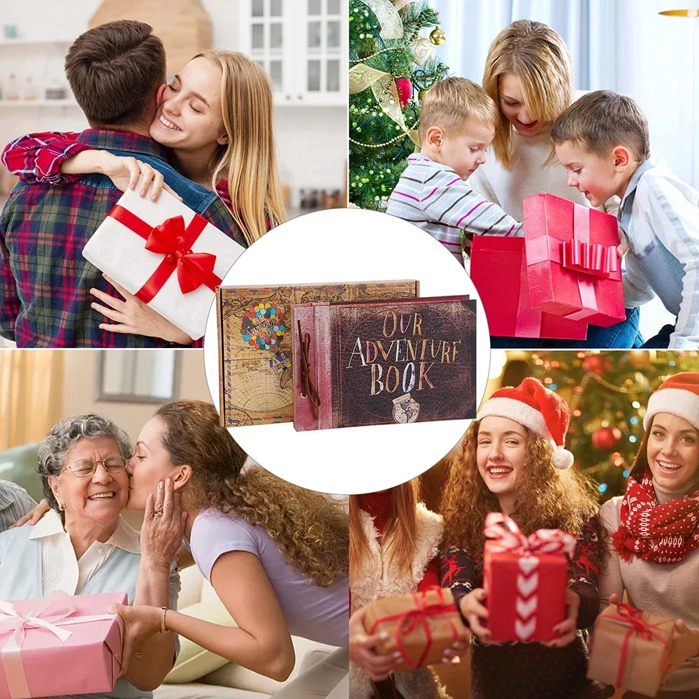 80 pages Our Adventure Book Scrapbook Photo Album 3d Retro Embossed Letter Hard Cover Friends Family Memo ry Book 11.9x7.6 Inch