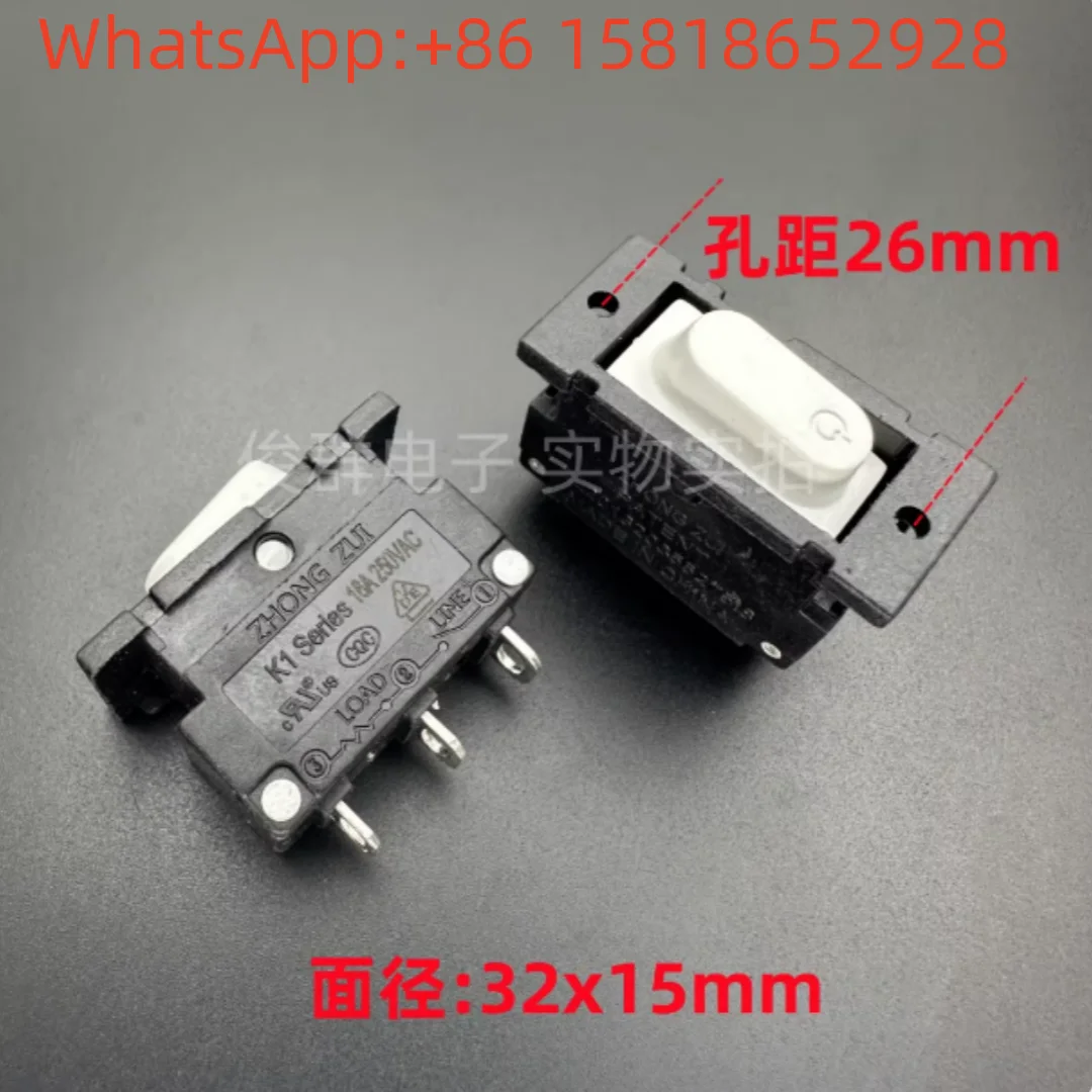 5 pieces ZHONG ZUI K1 small white rocker switch with light, overload protection, DL3 2-position 16A 250VAC