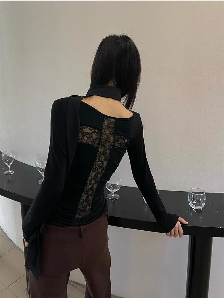Yedinas Back Cross Hollow Out T-shirt Woman Clothes Long Sleeve Korean Fashion Autumn Tops Slim Tees Female Clothing Y2k T Shirt