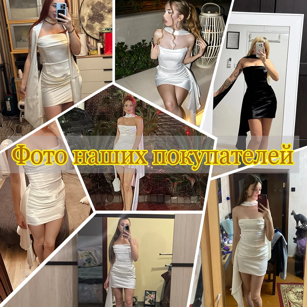 ALI shop - rezultati pretrage ... ... Suninheart Elegant Strapless Corset Dress Sexy White Satin Mini Draped Dress with Scarf Women Cocktail Party Dresses ::: 2021 ::: :::