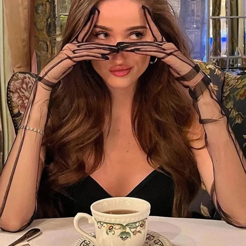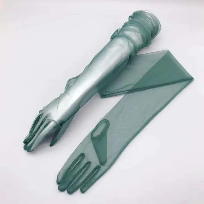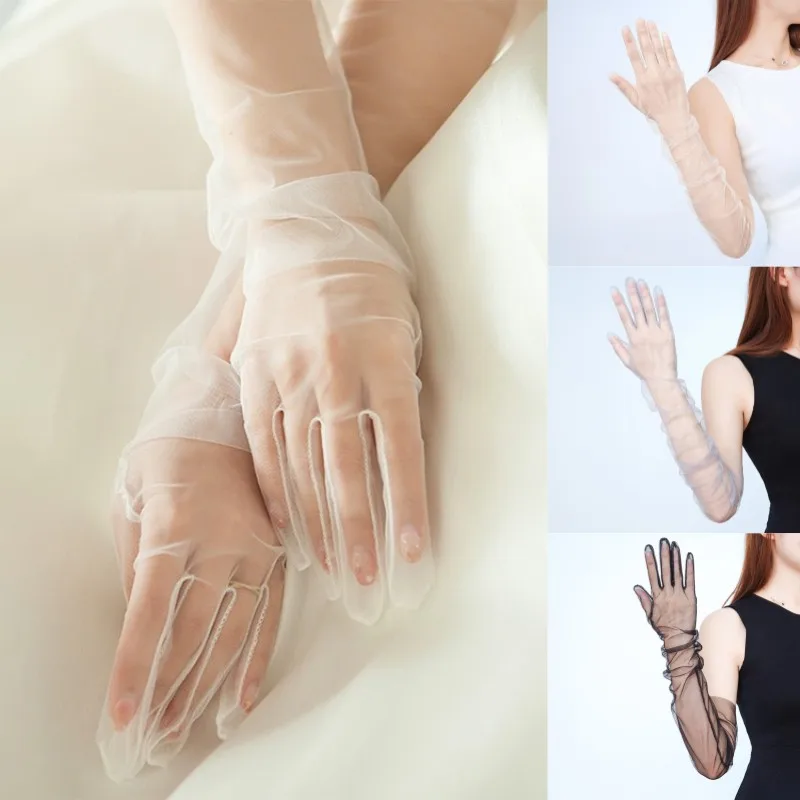 Women Transparent Thin Lace Elegant Tulle Long Gloves Mesh Gauze Wedding Party Summer Lace Ladies Prom Dress Gloves