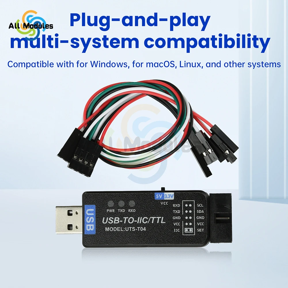 2-In-1 USB to IC2 IIC/TTL Serial Port UART Communication Module CH341T Flashing Downloader for Electronics