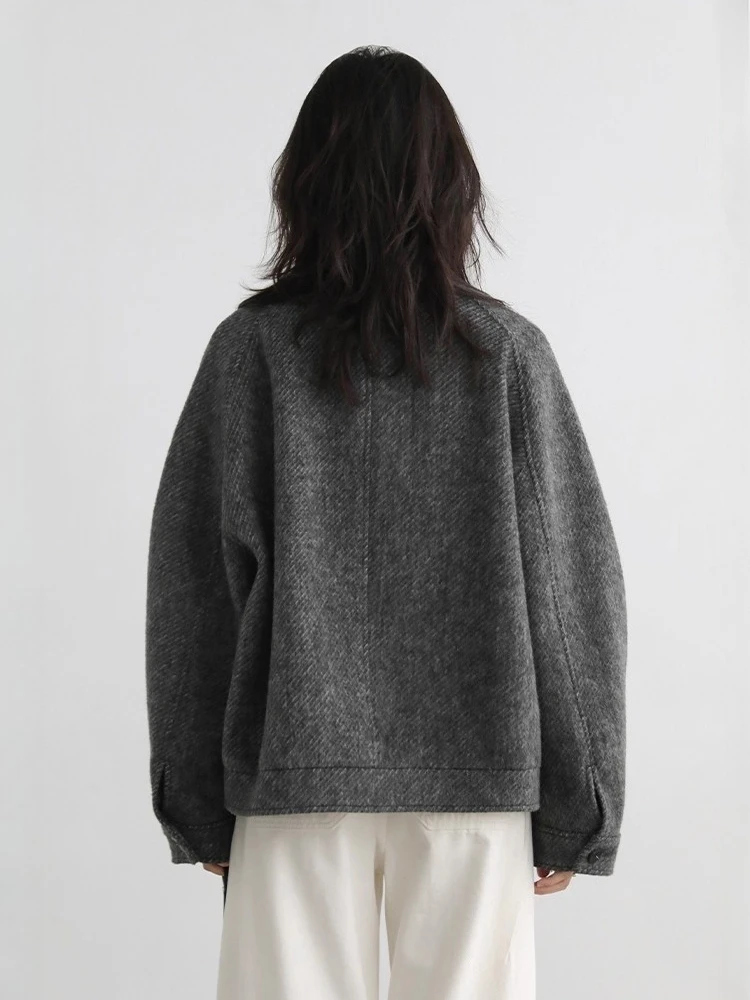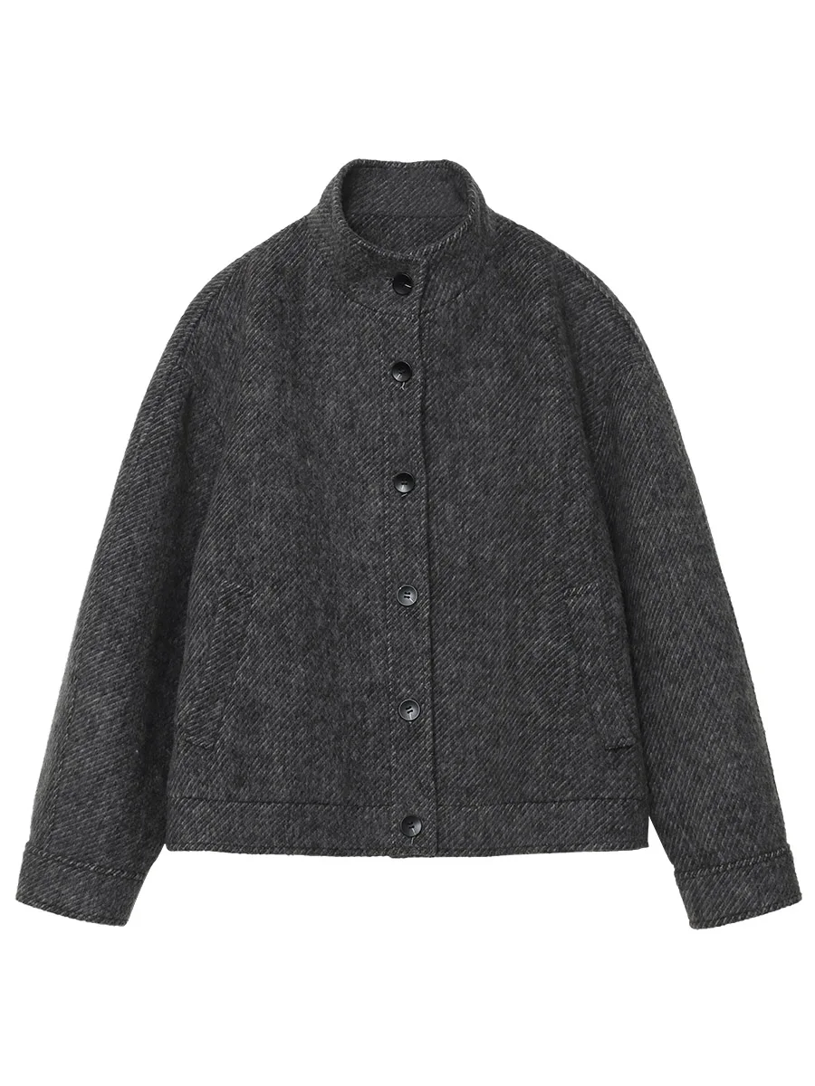 CHIC VEN Women Short Woolen Coat New Stand Up Twill Texture Single Breasted Ladies Jacket Retro Woman Outwear Autumn Winter 2025
