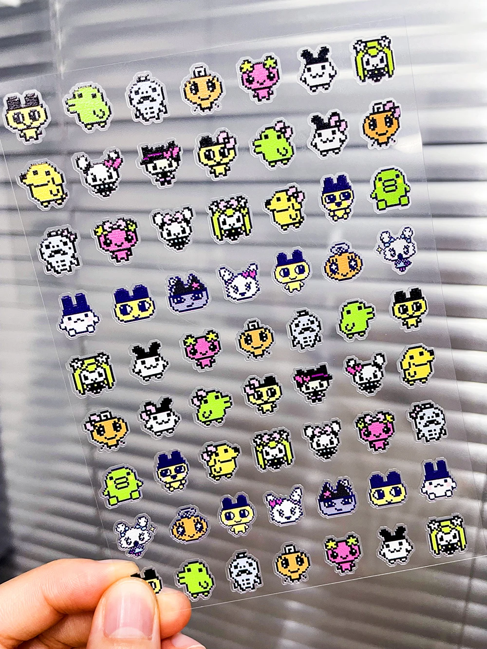 Kawaii Y2K Cute Pet Japanese Anime Self Adhesive Nail Sliders Pixel Style Mini Hand Account Diy Accessory Korean Nail Sticker