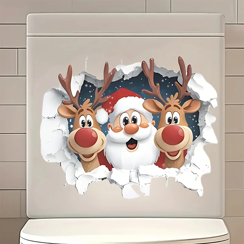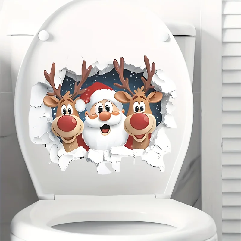 1PC Santa Claus Christmas Design Toilet Stickers Waterproof for Toilets and Bathrooms DIY Glass Window Universal Vinyl Decals